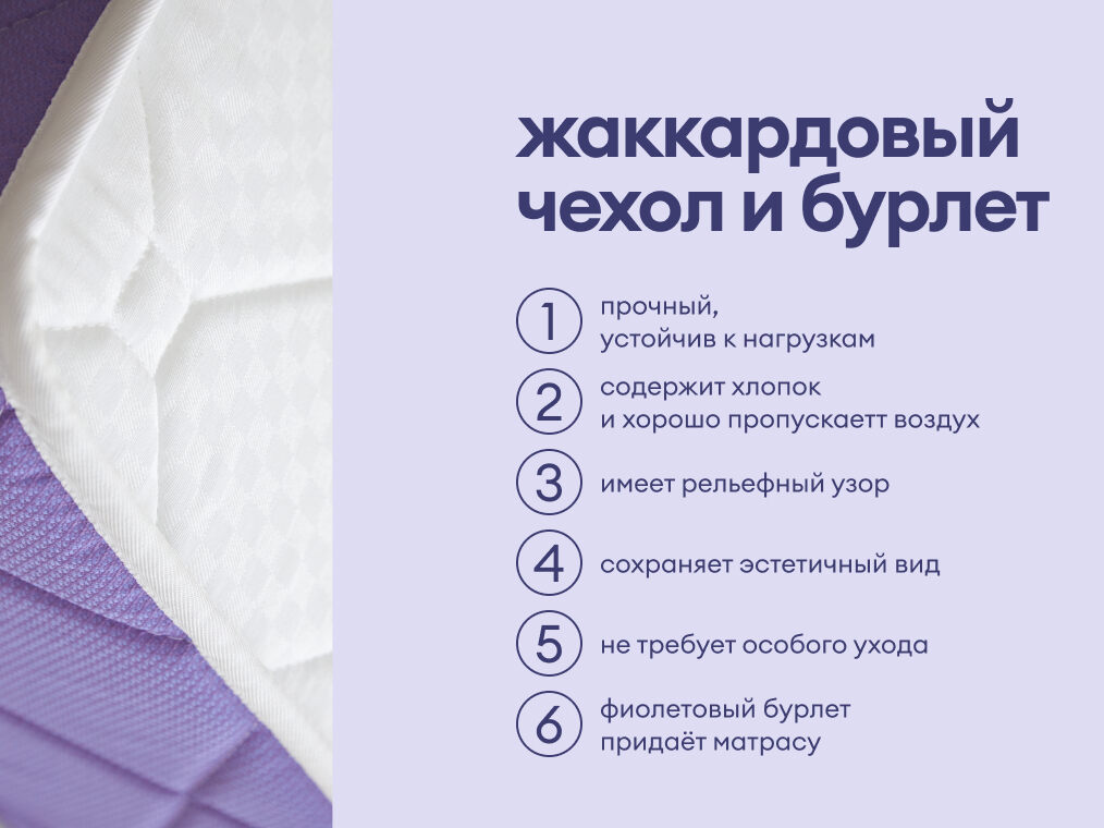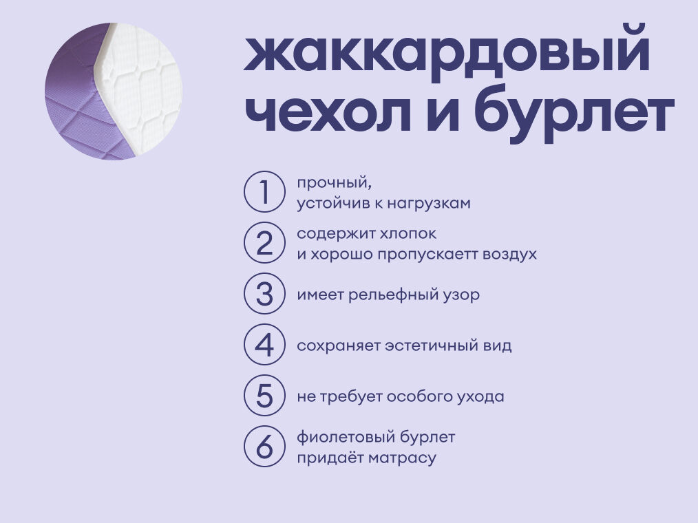 Матрас Базилик Фреш 20 Кокос сочетает в себе удобство и надёжную поддержку. Два вида наполнителей и средний уровень жёсткости делают его отличным выбором для полноценного отдыха. Яркий лавандовый бурлет привносит стиль французского Прованса прямо в ваш дом.