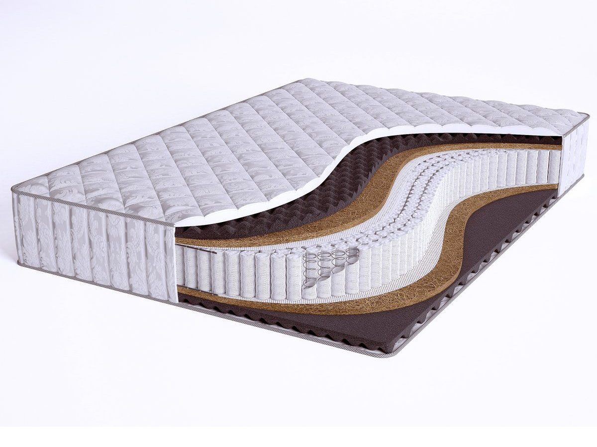 Основным наполнителем матраса является рельефный материал – airfoam massage. Он обладает расслабляющим и микромассажным эффектом, благодаря которому способствует улучшению микроцеркуляции крови в организме во время отдыха. Так же для улучшения ортопедического эффекта с двух сторон матраса положен слой латексированной кокосовой койры (2 см).