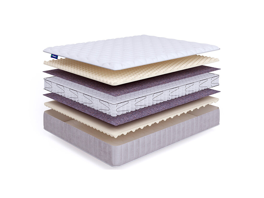 Основным наполнителем матраса является рельефный материал – airfoam massage. Он индивидуально подстраивается под тело спящего, оказывает микромассажный эффект и благоприятно сказывается на кровотоке во время отдыха.
