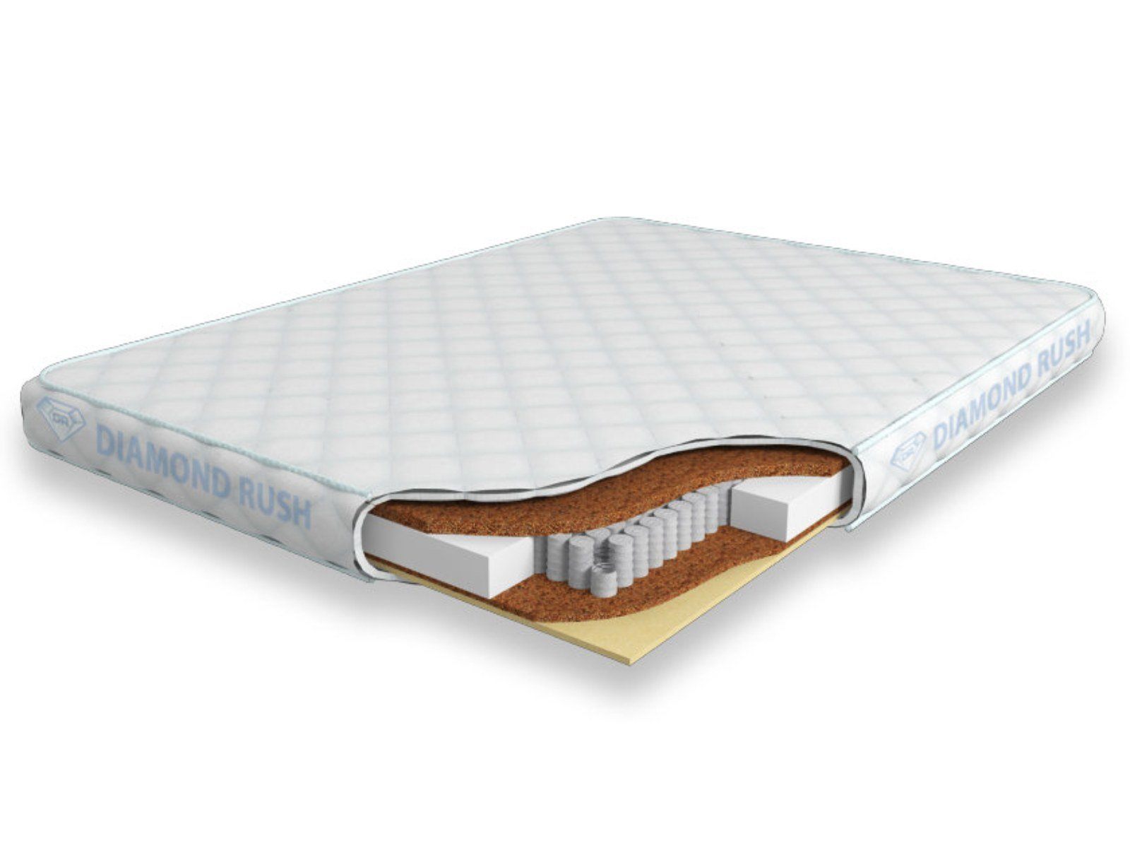 В качестве наполнения в верхней части изделия применен слой латексированного кокосового волокна толщиной 2 см. Это материал натурального происхождения, полученный с известных пальмовых плодов. Он хорошо вентилируется и обеспечивает высокую степень жесткости поверхности.