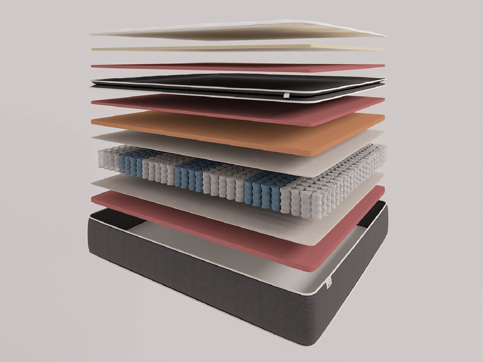 1. высокий матрас с большим количеством ценных слоев, отделяющих спину от пружин;