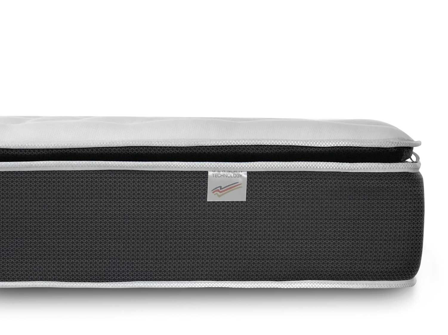 Система усиления края матраса PROEdge - запатентованная технология, усиливающая плотность периметра матраса, увеличиваюащая срок службы матраса за счет микро-перфорации на коробе влаго отвод и циркуляцию воздуха во время сна, что делает матрас более гигиеничным. За счет увеличения площади края матраса - на краю матраса удобно беспрепятственно сидеть, легко вставать с матраса и не скатываться во время сна.