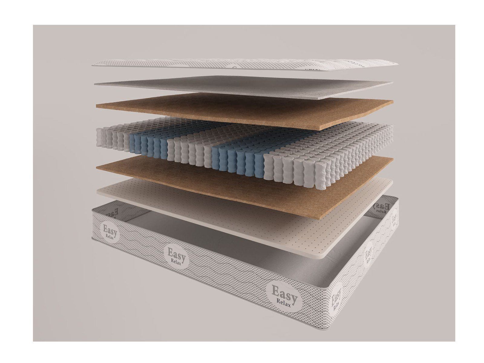 В качестве наполнителей в данной модели используется натуральный латекс, который делает одну сторону матраса более комфортной и анатомичной, и кокосовое волокно, придающее другой стороне жесткость. Латекс характеризуется упругостью, гипоаллергенностью и прочностью, он легко переносит серьезные нагрузки и быстро восстанавливает первоначальную форму. Слой из кокосовой плиты служит гигиенической защитой спального места, поддерживает сухость внутри матраса и препятствует появлению неприятных запахов. Термовойлок отделяет пружины от наполнителя.