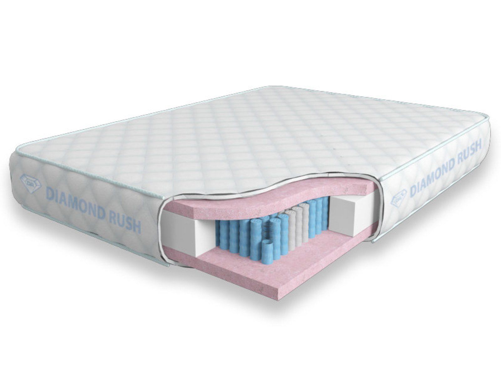 Данный матрас из серии Luxury Diamond имеет в своей основе независимый пружинный блок MultiZone, состоящий из пружин диаметром 3-4 см разной жесткости. В качестве настилочных слоев поверх пружинного блока используются листы уникального вязкоэластичного материала с памятью – Меморикса. Матрас является очень мягким, и часто рекомендуется для людей пожилого возраста.