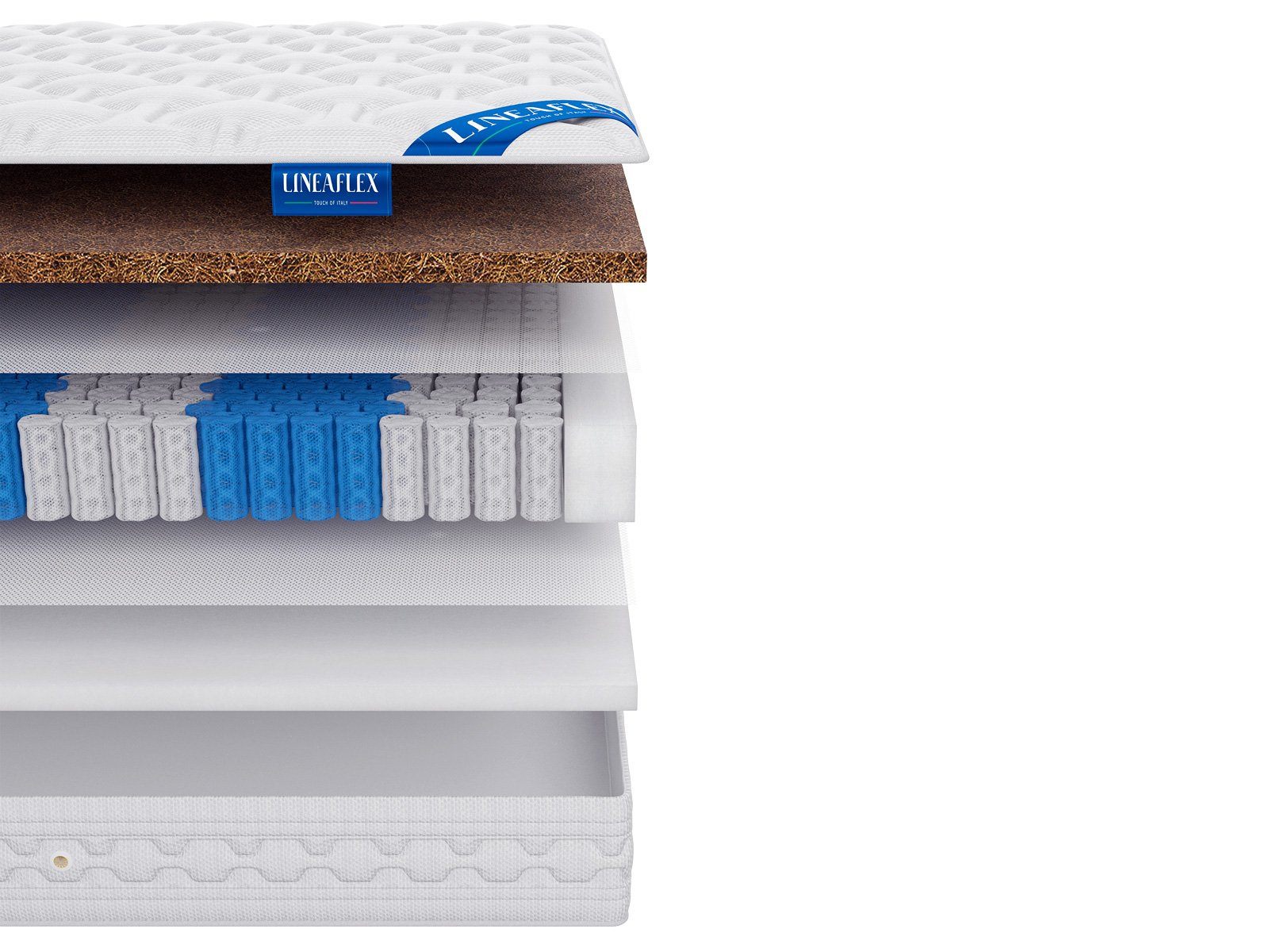 Койра производится из волокон пальмы, поэтому материал относится к 100% натуральным и отвечает за правильную поддержку тела. ERGOFLEX – эластичная искусственная пена, которая отлично адаптируется под линии фигуры, а потому очень комфортна для сна и отдыха.