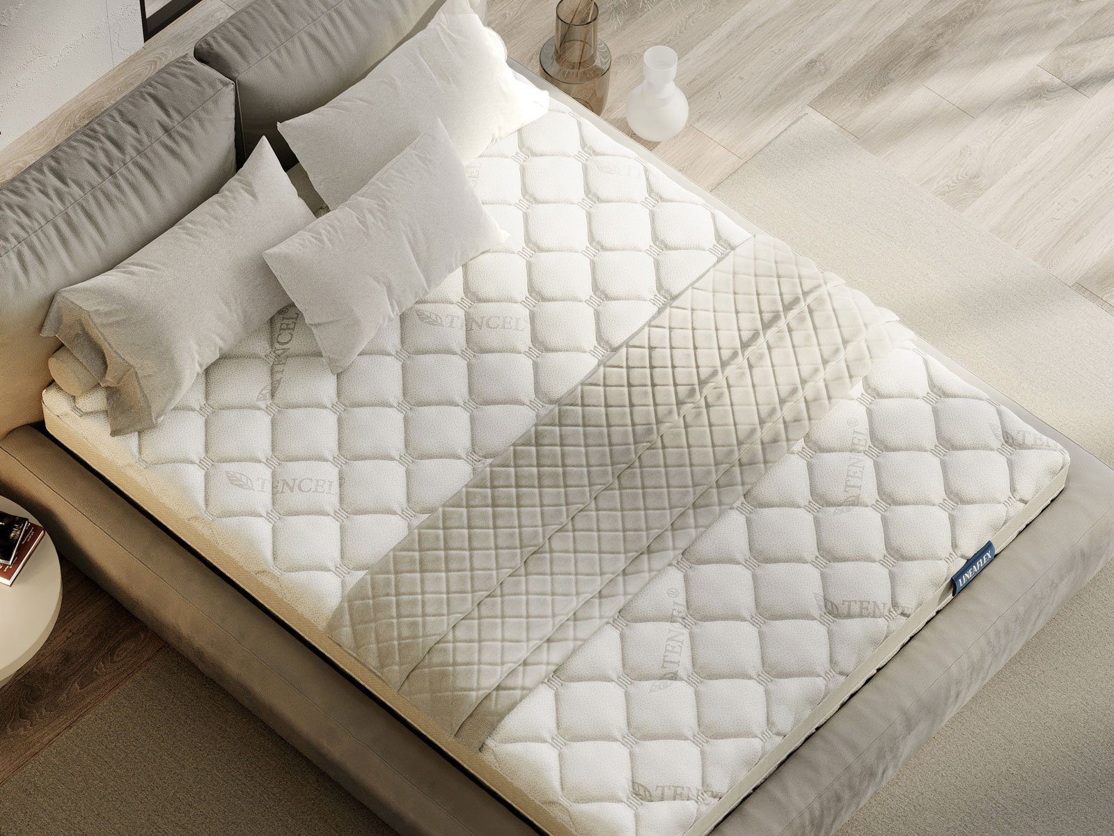 Матрас компактно размещается в чехле из ткани TENCEL. Этот материал получают из эвкалиптовой основы. Натуральная база наделяет слой способностью к аэрации, гигроскопичностью и даже антибактериальными свойствами. Чехол отличается шелковистой текстурой и нежным мягким финишем.