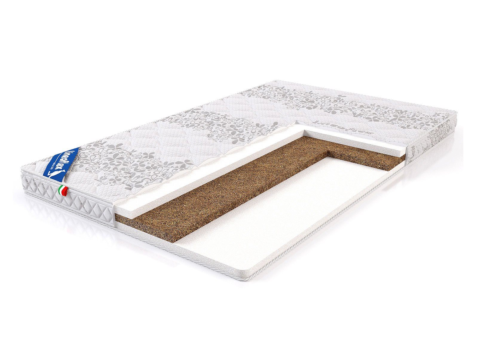 Матрас построен на основе трёх равных блоков. Две панели с пеной ERGOFLEX как бы обнимают слой кокосовой койры с двух сторон. В разрезе такая комплектация выглядит как трёхслойный торт.