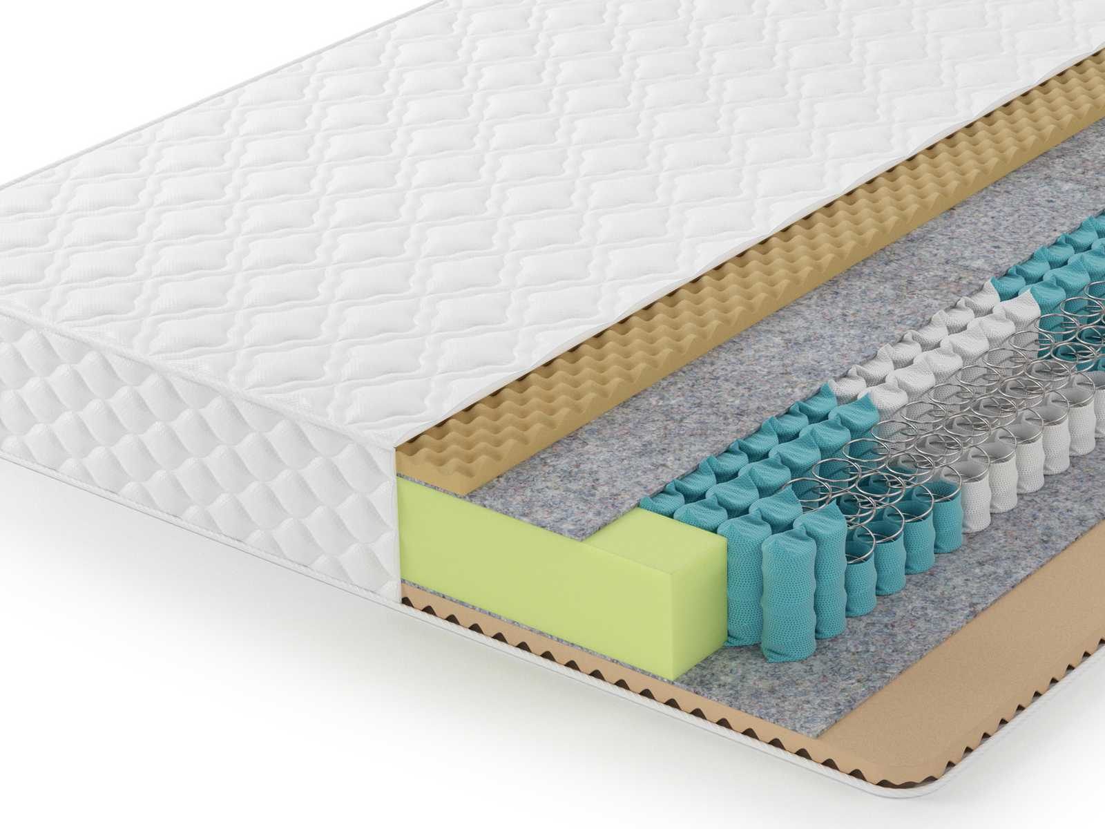 В качестве основы в модели поставлен пружинный блок TFK 5 Zone. Данная система отличается специальным независимым способом крепления поддерживающих элементов. Здесь каждая из пружин помещается в свой собственный чехол из спанбонда. По форме такая оболочка напоминает вытянутый цилиндр или стаканчик. Секрет в том, что фиксация пружин внутри матраса осуществляется за счёт чехлов, таким образом сами спирали остаются несвязанными и сохраняют полную автономность. Так возникает эффект точечной подстройки под фигуру. Блок чётко дублирует естественные изгибы спины, гарантируя максимально естественную поддержку.