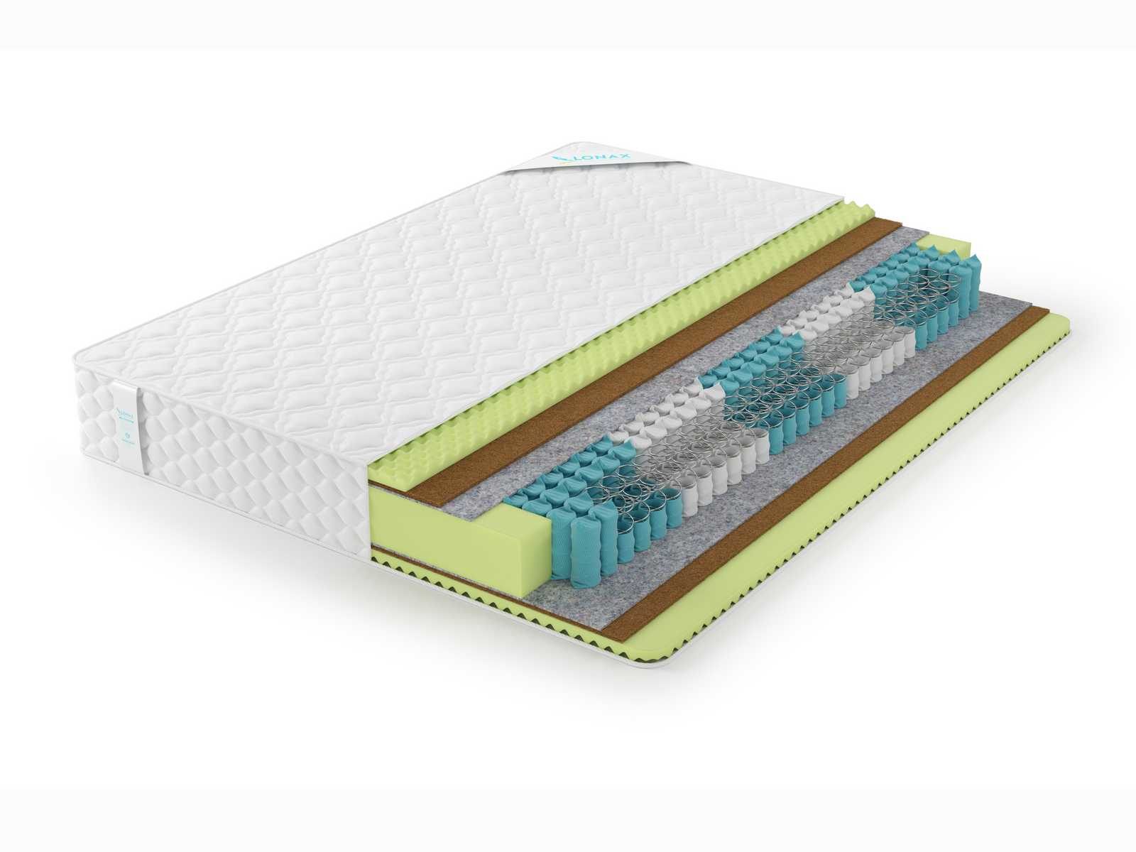 Слои пенополиуретана оформлены с помощью специальной рельефной резки благодаря чему и оказывают массажное воздействие. В сою очередь кокос продолжает работу пружинного блока и усиливает процесс ортопедической поддержки. В результате матрас обретает целый спектр полезных качеств.