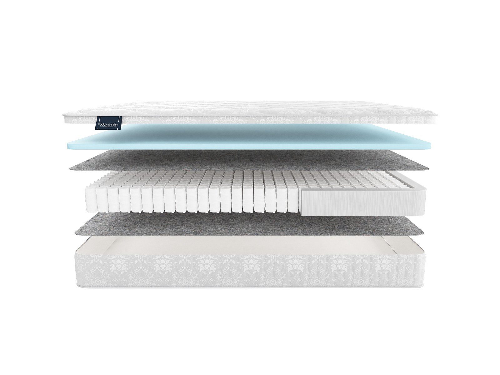 Матрас снабжен независимым пружинным блоком (520 пружин на спальное место), который адаптируется к смене положения тела во время отдыха. Независимые пружины отлично поддерживают спящего человека, выдерживают даже значительную нагрузку и создают правильную ортопедическую поддержку.