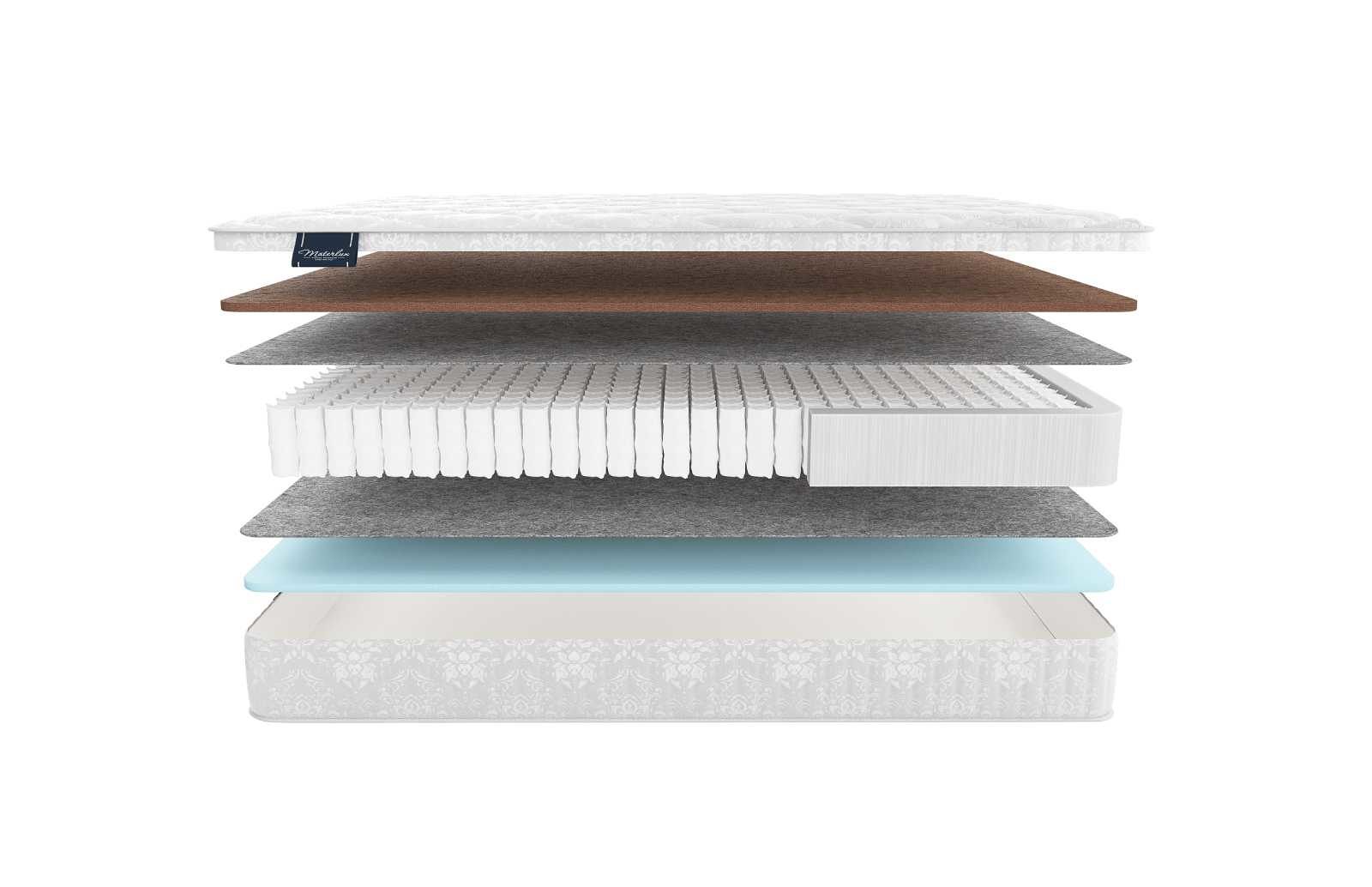 Кроме пружин за ортопедическую удержание позвоночника в правильном положении отвечают и наполнители. Natural Foam оказывает умеренную опору, отличается мягкостью и эластичностью. Кокосовое полотно даёт ещё более выраженную поддержку благодаря высокой плотности самого материала.