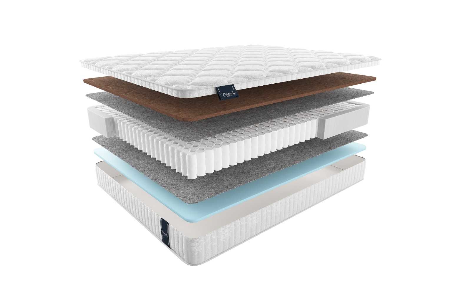 Между плитами наполнителей установлен независимый блок пружин, который обеспечивает равномерную поддержку тела инвариантно от того, какой стороной установлен матрас. Отличительная особенность данного блока – это специальное независимое закрепление всех элементов, а их здесь 270 шт. на квадратный метр. Каждая спираль функционирует полностью автономно и включается в работу только при непосредственной нагрузке, поступающей именно на неё. Это важно для качественной ортопедической поддержки. Старые системы зависимых блоков не могут таким похвастаться, поскольку вовлекают в работу всю площадь матраса. В результате человек проваливался на такой поверхности как в гамаке, что приводило к неудобству и даже болям в спине.