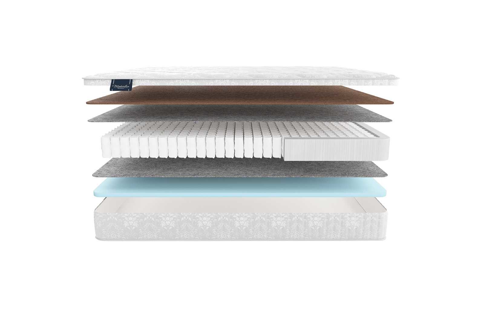 Что касается наполнителей, то это прекрасно зарекомендовавшие себя материалы. Койра кокоса – исключительно натуральное полотно, которое изготавливается из растительного сырья. Экологически чистый материал, обладающий выраженной жёсткость и гибкостью. Данная совокупность наделяет слой ярко выраженным ортопедическим качеством, которое отвечает за гармоничную поддержку спины.