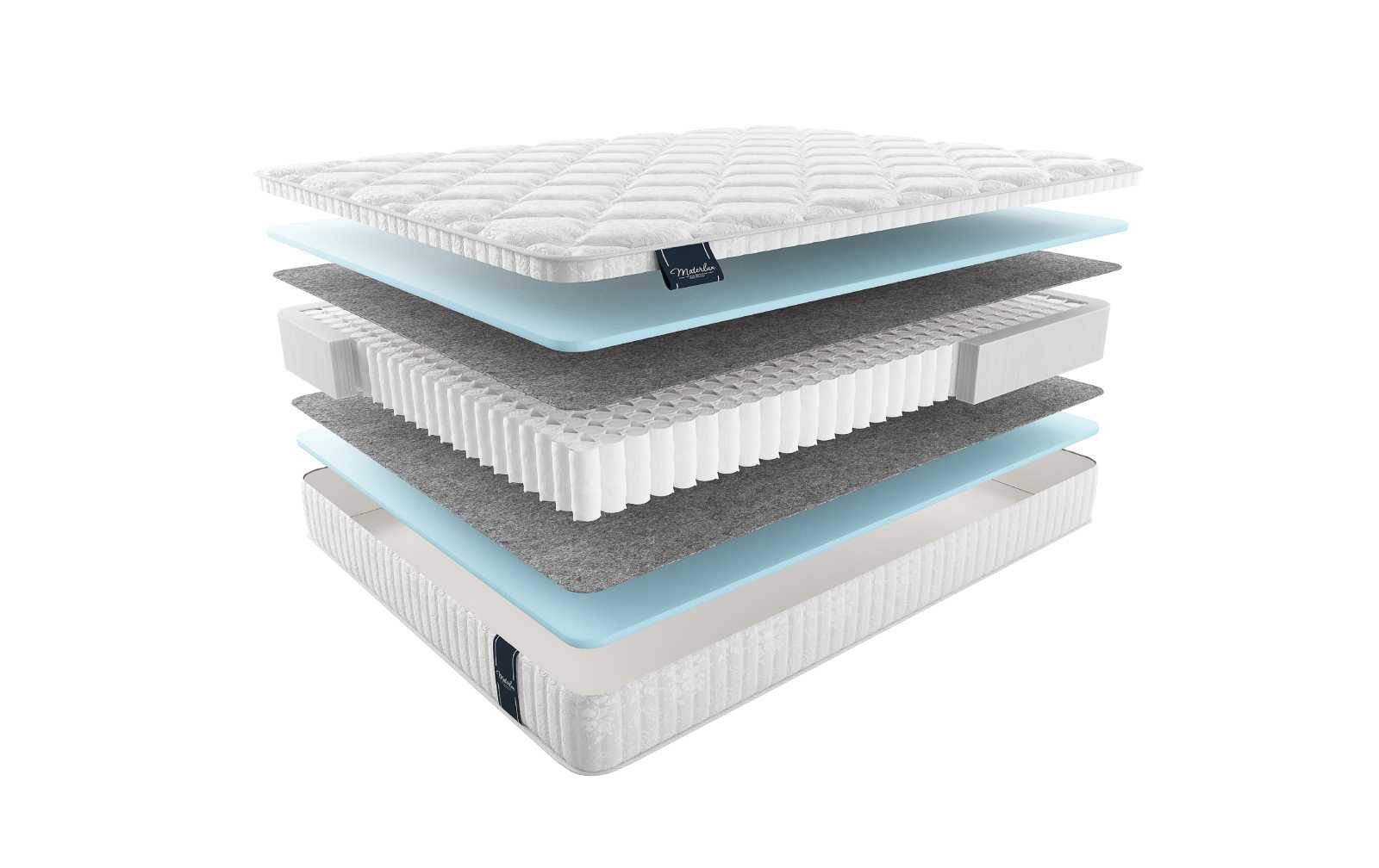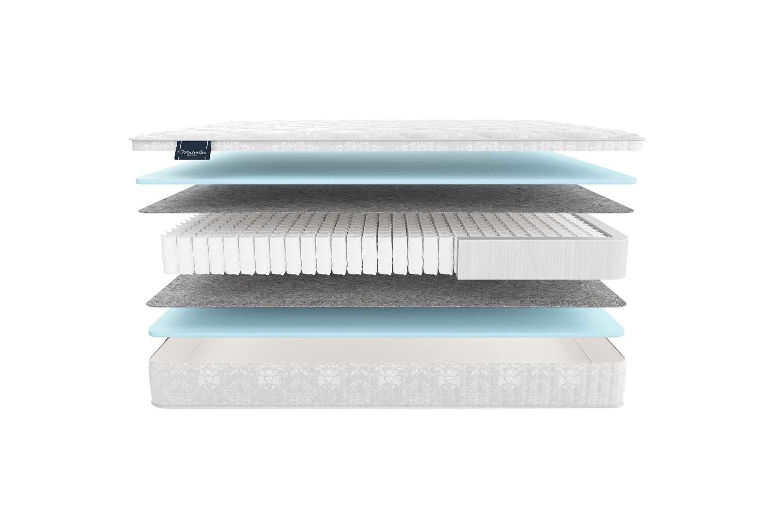 Центром изделия служит блок с независимо установленными пружинами. Его квадратный метр содержит сразу 270 элементов. Особенность таких спиралей заключается в индивидуальной работе. Спираль остаётся неподвижной, пока на неё не придётся нагрузка. Это свойство гарантирует, что матрас не получит так называемый «эффект гамака», когда в процесс поддержки устремляется вся поверхность матраса, образуя неудобную для спины большую воронку. Независимый блок решает эту проблему и гармонично подстраивается под формы тела. Таким образом позвоночник человека получает правильную ортопедическую поддержку и естественно разгружается.