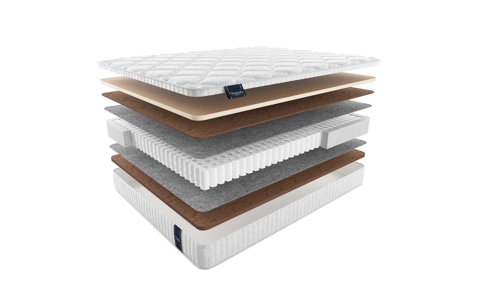 В качестве основного несущего слоя выступают независимые пружины. 256 элементов на квадратный метр не только отлично выдерживают большую нагрузку, но и оказывают плавную и аккуратную поддержку для спины. Важно, что удержание позвоночника реализуется в анатомически естественном положении.
