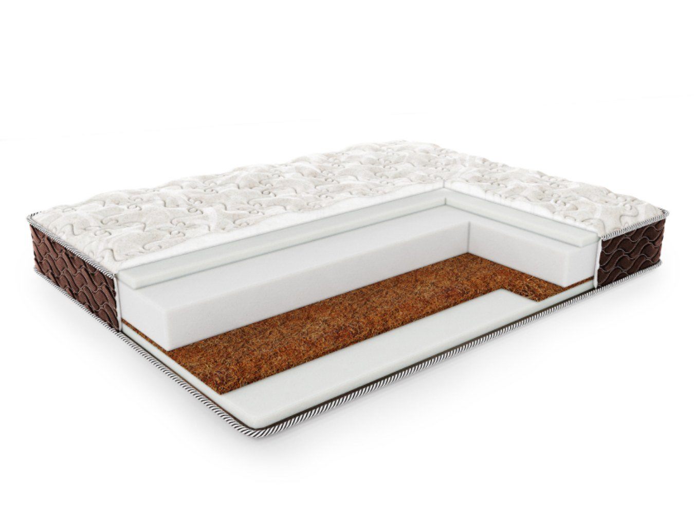 В число наполнителей изделия входит натуральная кокосовая и койра, ППУ и слои хлопкового войлока. Последний проложен с двух сторон от плиты койры и выступает в качестве защитного материала. Присутствие белого войлока обеспечивает усиленную поддержку матраса, а также способствует переносу большого давления – до 120 кг на спальное место.