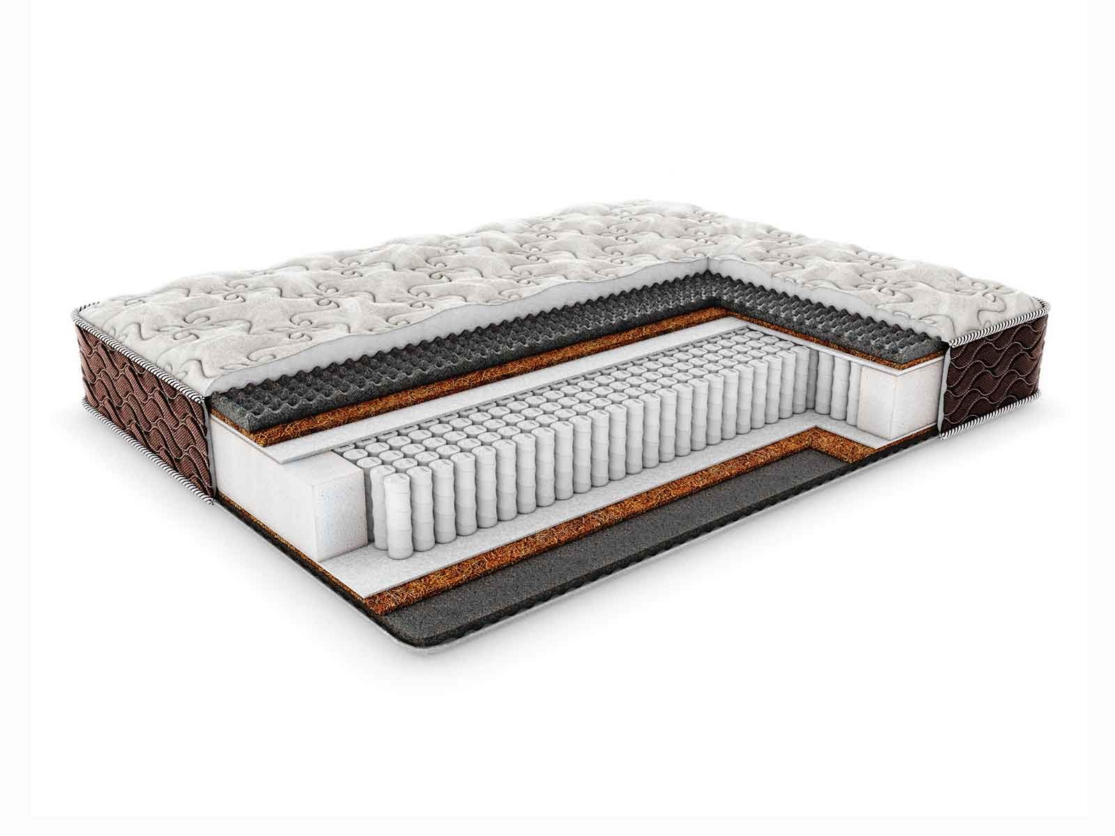 Сразу за пеной установлен кокосовый слой – специальный натуральный наполнитель с высокими характеристиками жёсткости. Материал передаёт поверхностям правильную ортопедическую поддержку, а также уплотняет спальное место.