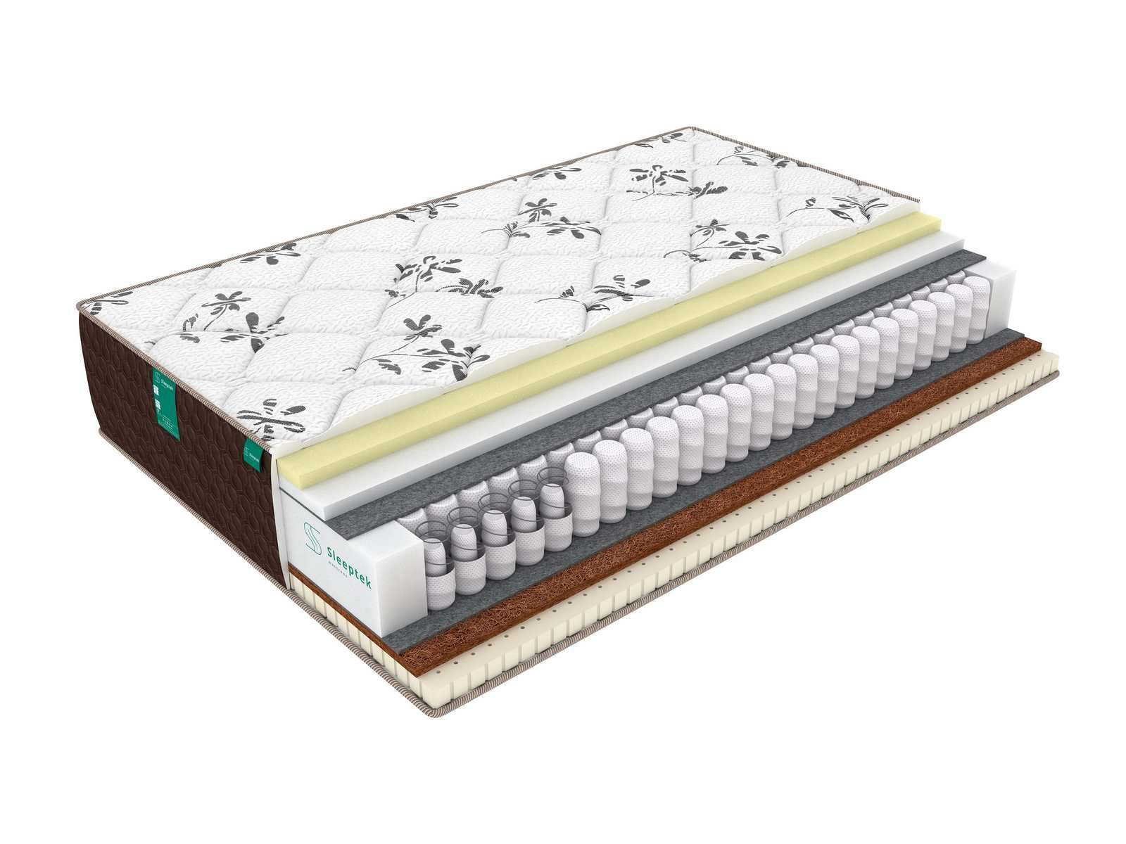 В качестве наполнителя с умеренно мягкой стороны использована комбинация койры кокоса и натурального латекса. Такое сочетание помогает одновременно усилить ортопедические качества блока пружин и придать спальному месту комфорт.