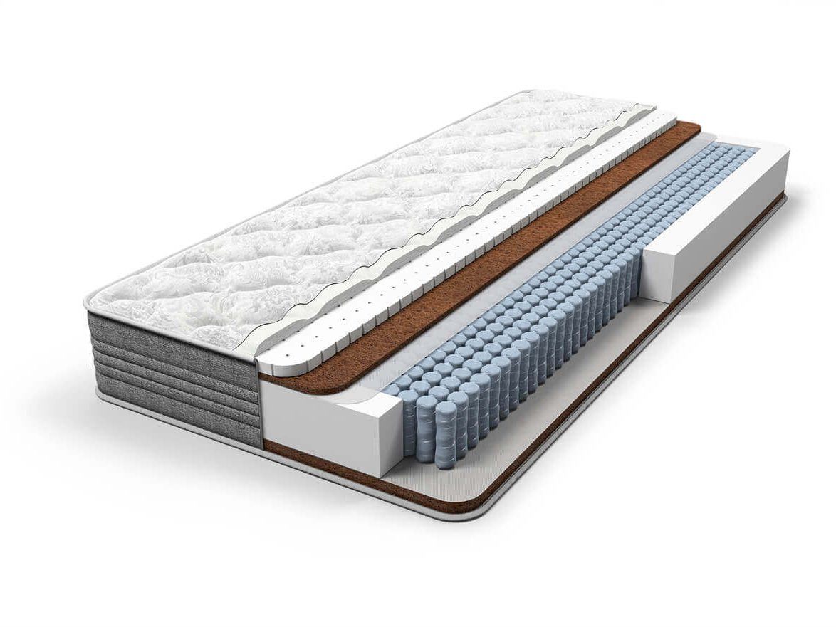 Матрас с независимыми пружинами MultiPocket, плотностью 1 000 штук на спальное место. Благодаря высокой плотности пружин матрас обеспечивает качественную поддержку позвоночника, выдерживает большие нагрузки и равномерно распределяет вес по всей горизонтальной поверхности матраса. Матрас с разной жесткостью сторон на основе натуральных наполнителей. С одной стороны матраса с независимыми пружинами кокосовая койра в комбинации с натуральным латексом обеспечивают среднюю жесткость, с другой кокосовая койра обеспечивает максимальный ортопедический эффект благодаря повышенной жесткости.
