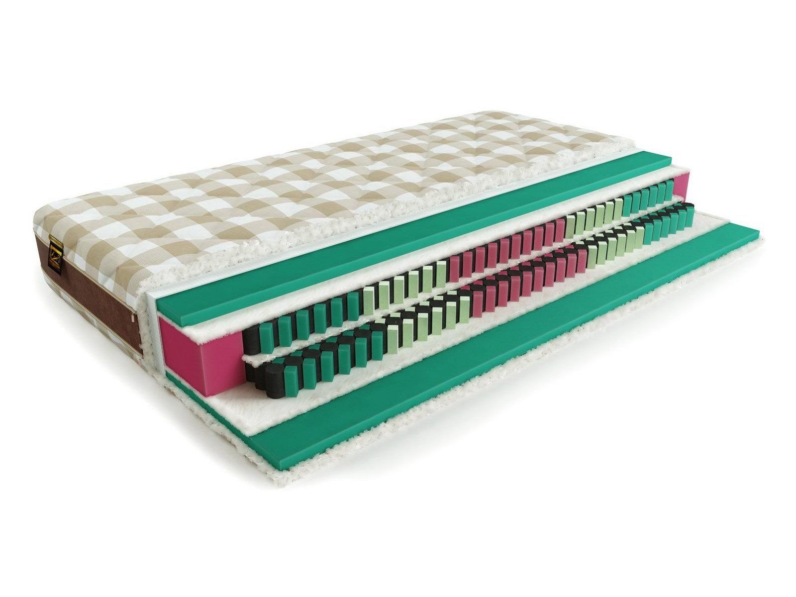 Матрас имеет уникальный независимый пружинный блок «hypnotic duo». Его уникальность заключается в диаметре проволоки - 2мм, вместо стандарта 1,8мм, что повышает износостойкость изделия. Система пружин hypnotic duo – это два пружинных блока, собранные вручную – стальные пружины и пружины из соевой пены высотой 6 см, между которыми расположен скрепляющий настил из натуральной шерсти. Инженерные расчеты позволили сделать этот блок очень прочным, стойким, с хорошим ортопедическим эффектом, поэтому матрас прослужит вам очень долго.
