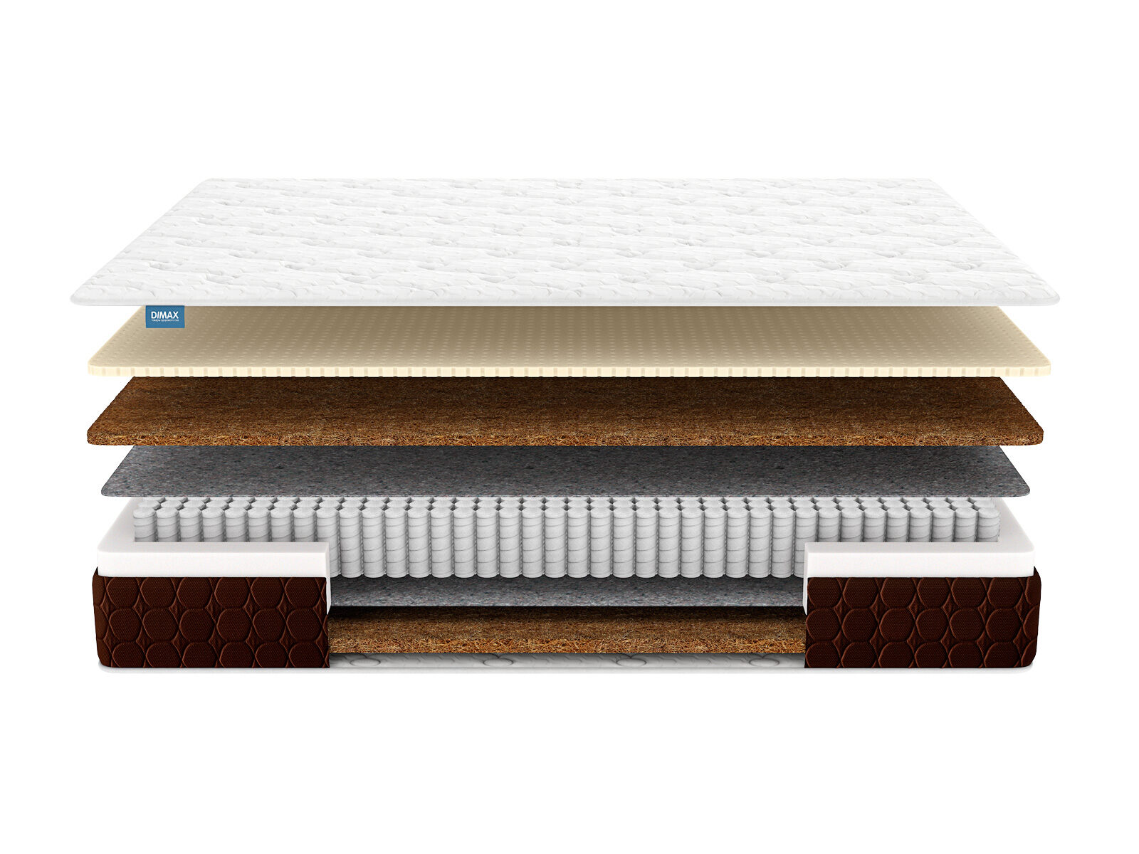 Димакс Мега Хард Лайт Плюс — пружинный матрас, объединяющий натуральные материалы и инженерные технологии для безупречной поддержки позвоночника. Многослойная конструкция из натурального латекса, кокосовой койры и блока S1000 создает баланс между экологичным комфортом и ортопедической жесткостью, выдерживая рекордную нагрузку до 150 кг на спальное место.