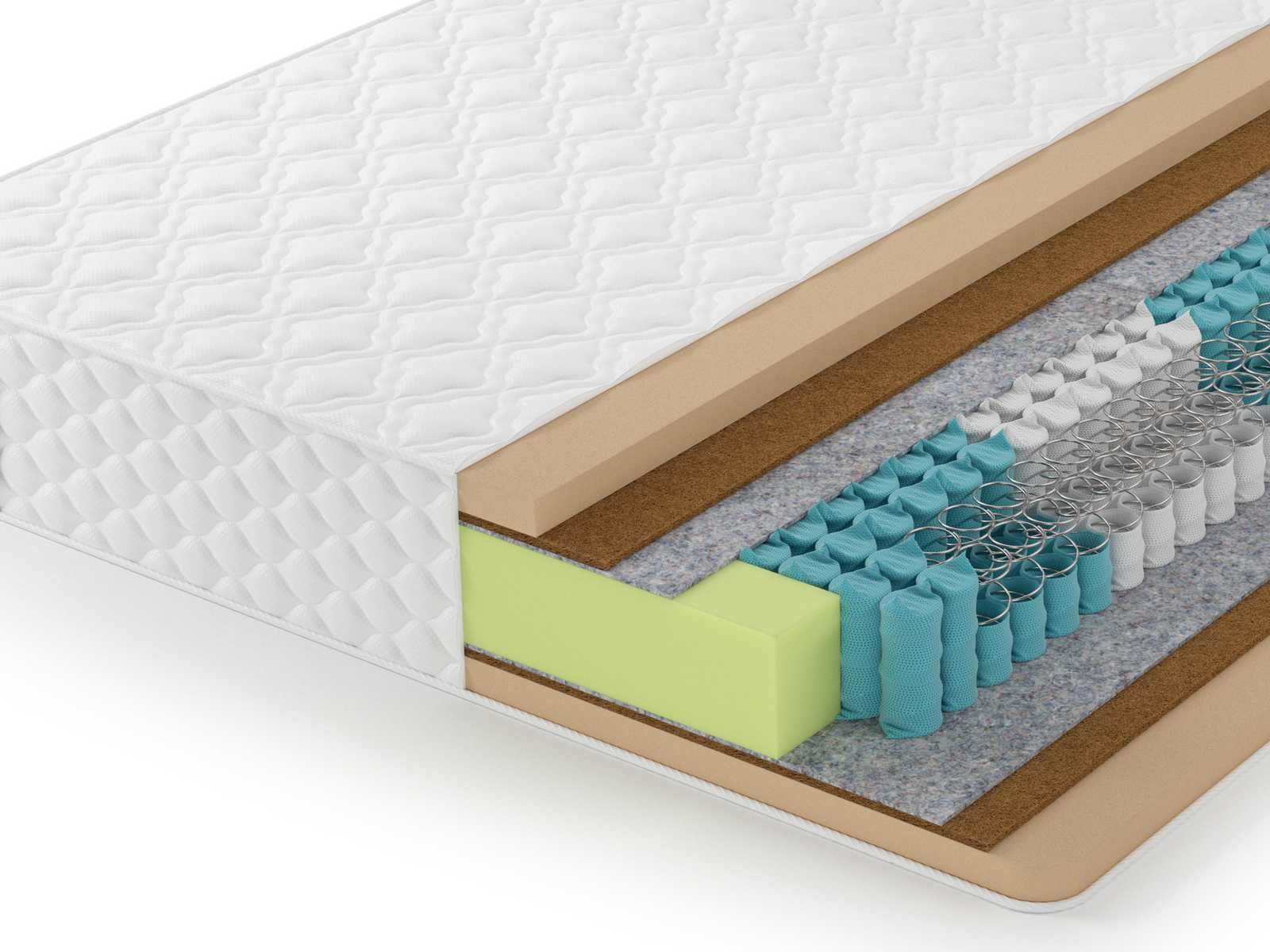 Средний уровень жесткости, матрасу обеспечивает латексированная кокосовая койра. Это очень прочный материал, который не впитывает влагу и не вбирает в себя посторонние запахи.