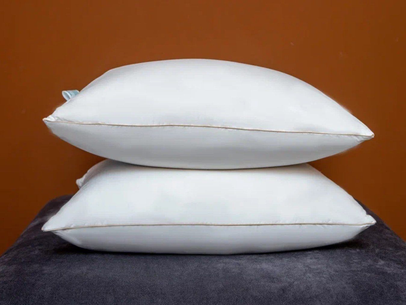 Ткань: 100% хлопок —гребенной сатин из длинноволокнистого хлопка, обеспечивающего ткани невероятную однородность и высокую плотность плетения: 310/248 нитей на 10 см²,140 г/м². Цвет белый. Наполнитель: Внешний слой — пуховый Экстра нового сбора, прошедший дополнительную ручную сортировку и антимикробную обработку (белого цвета), внутреннее ядро (для создания в подушке необходимой высоты и упругости) – натуральный пух первой категории (около 70% пуха).