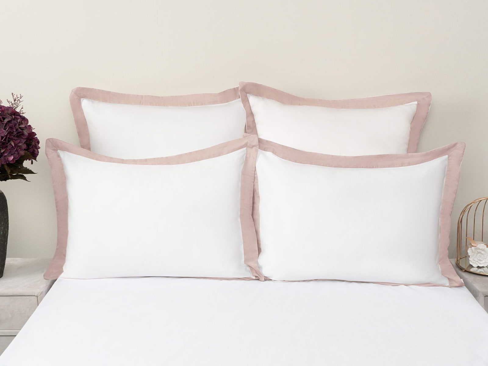 Особенность: белые наволочки декорированы контрастными цветными ушками 5 см с четырех сторон. Наволочки на запахе.