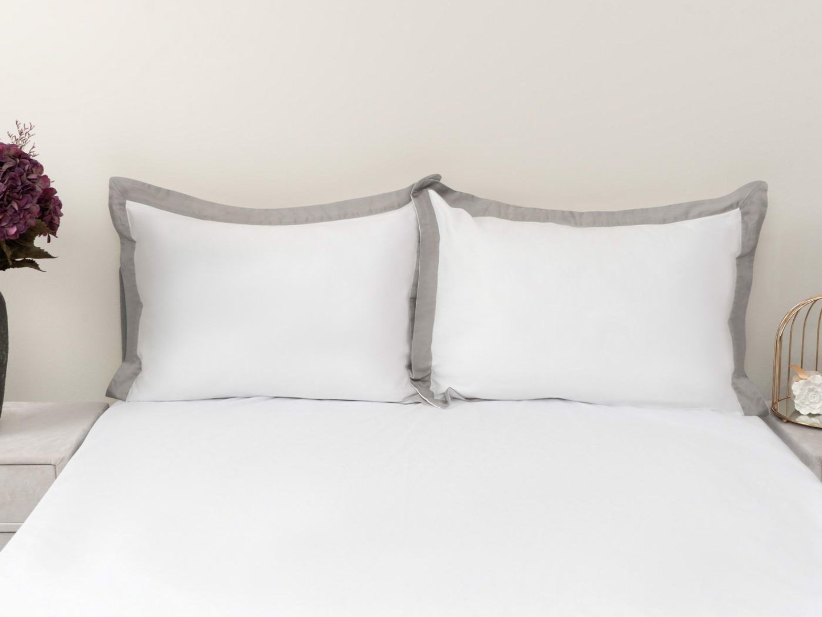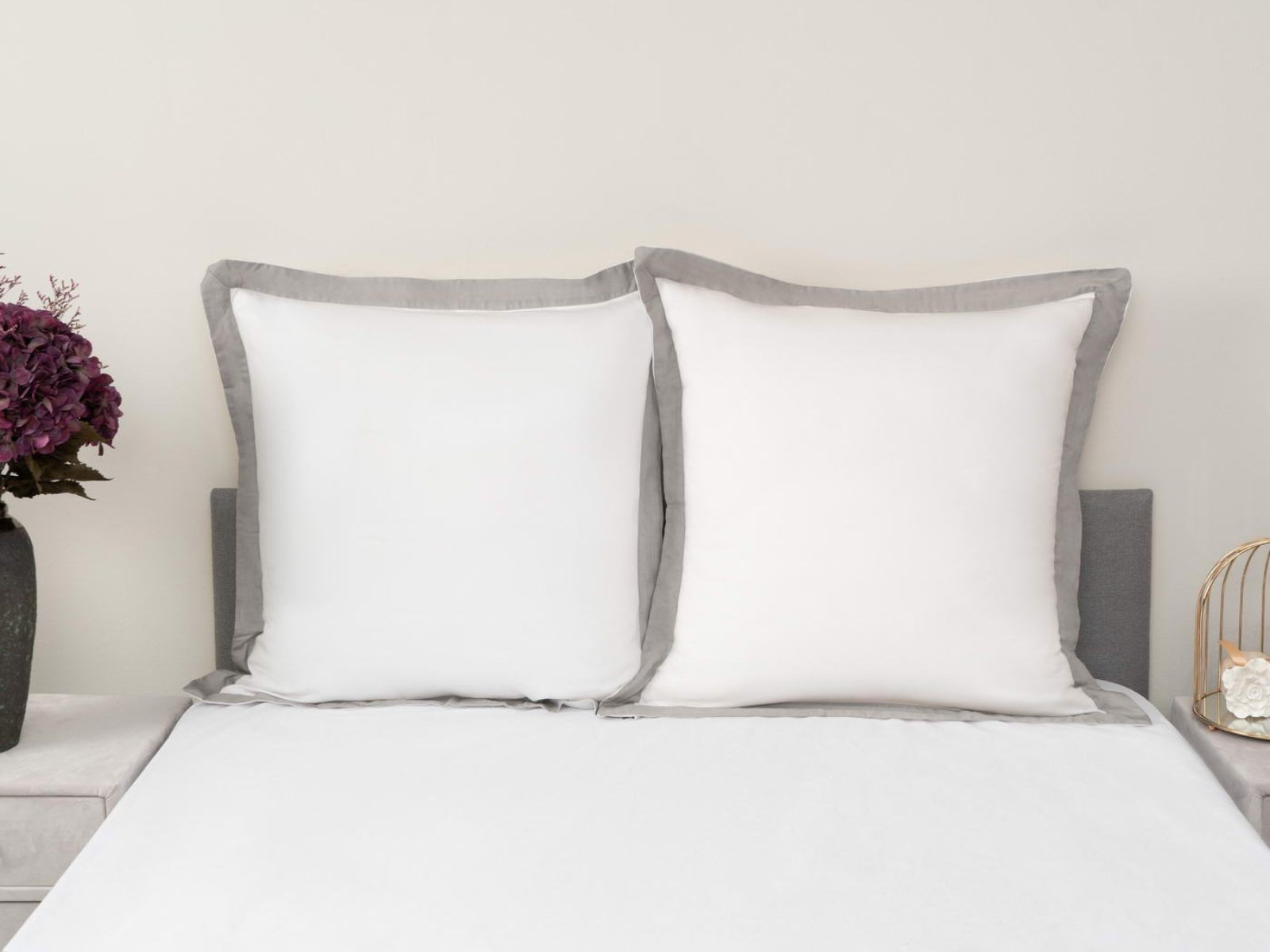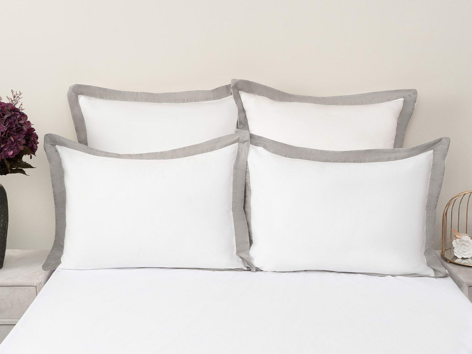 Особенность: белые наволочки декорированы контрастными цветными ушками 5 см с четырех сторон. Наволочки на запахе.
