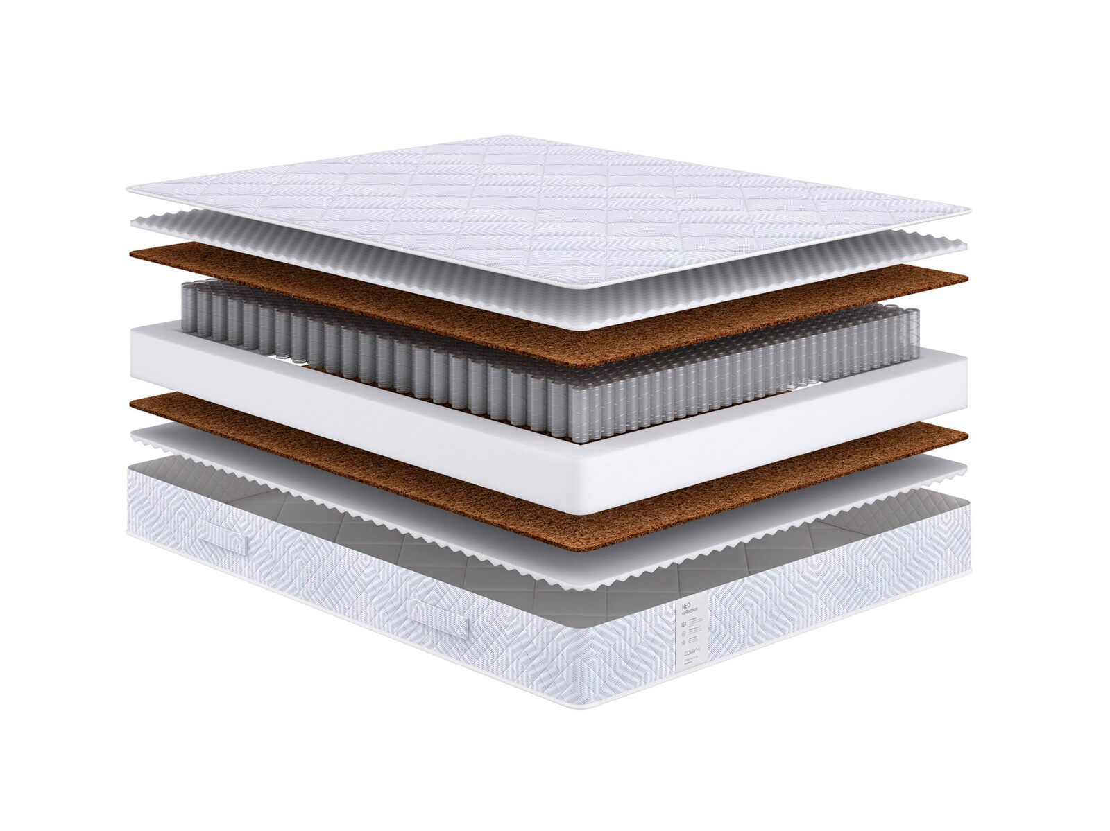 Матрас средней жёсткости с независимым пружинным блоком ChessPocket. Пружины расположены в шахматном порядке, что оказывает упругую поддержку позвоночнику. Сочетание микромассажного комфортного слоя и наполнителя из кокосовой койры дарит упругость и максимальное расслабление, необходимые для комфортного и здорового сна.