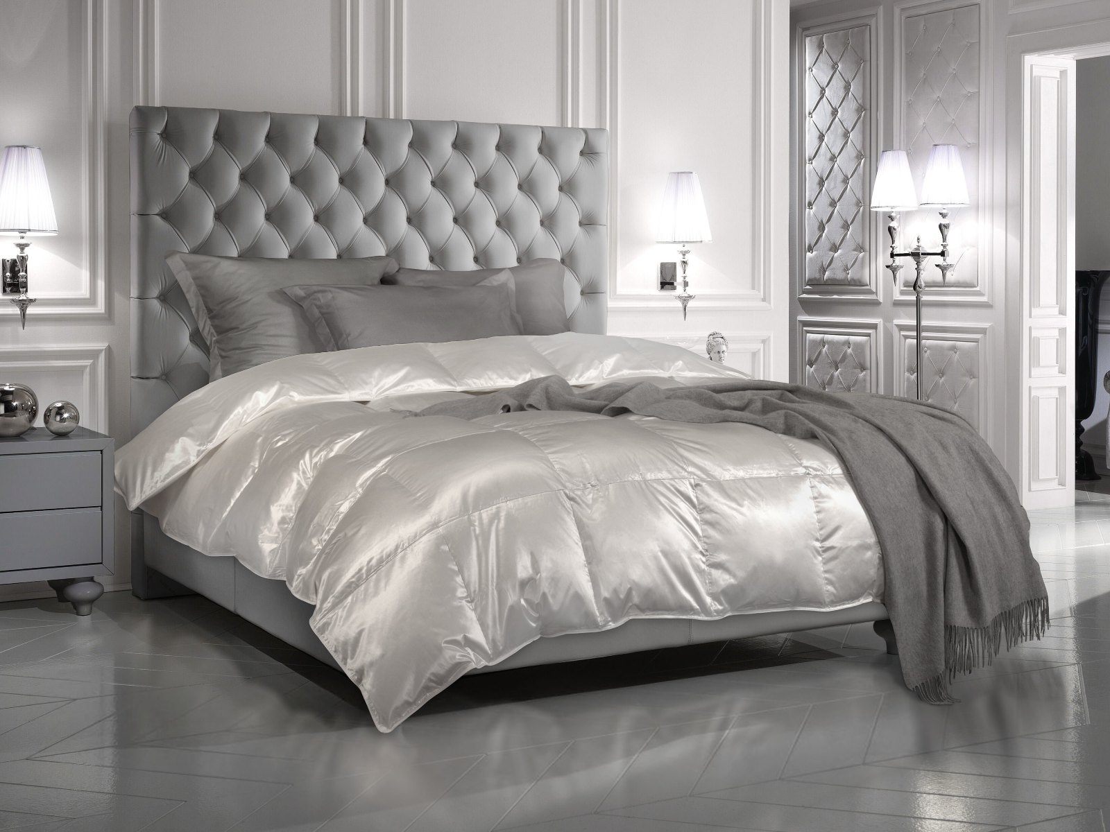 Жемчужина коллекции – одеяло Silvana с наполнителем из мазурийского гусиного пуха в чехле из натурального шелка с хлопком.