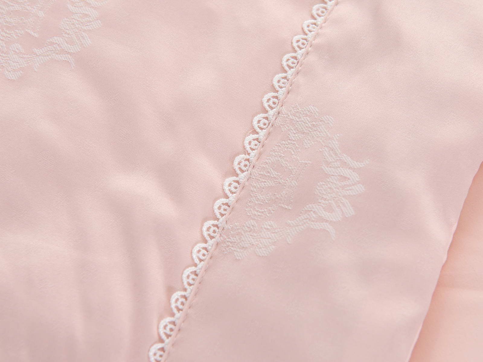 Одеяло представлено в модных цветах этого сезона: пудра, персик, крем, серый, карамель. Такие оттенки придадут нотки изысканности и утонченности вашей спальне. Изделие украшает декоративная стежка, создающая на одеяле прямые, изогнутые линии и окружности. С помощью специального станка на ткань нанесен уникальный повторяющийся рисунок в винтажном стиле. Вы можете выбрать узор на свой вкус: небольшой лавровый венок, венчающий корону, или одну из цветочных композиций среднего размера. По широкому канту в тон изделию проходит деликатная полоска светлого кружева.