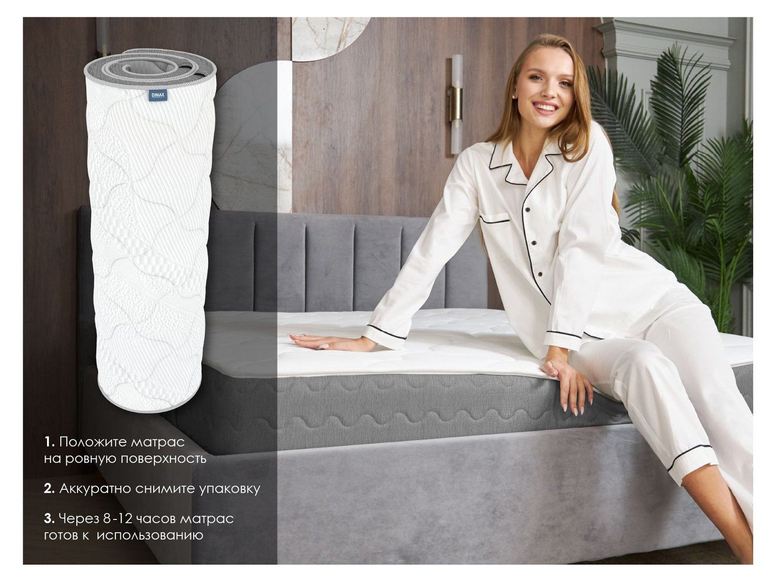 Чехол модели изготавливается из светлого оттенка трикотажа. Ткань простёгивается на синтепоне и пене Balance. Сразу два слоя наполнителей обеспечивают повышенный комфорт и мягкость. Обивка обретает объёмный рельефный рисунок, который придаёт ещё больше уюта спальному месту. За усиление обивки отвечает слой прочного спанбонда. Материал придаёт чехлу прочность и носкость. Все вместе слои формируют 4D Original – четырёхслойную обивку повышенного комфорта.