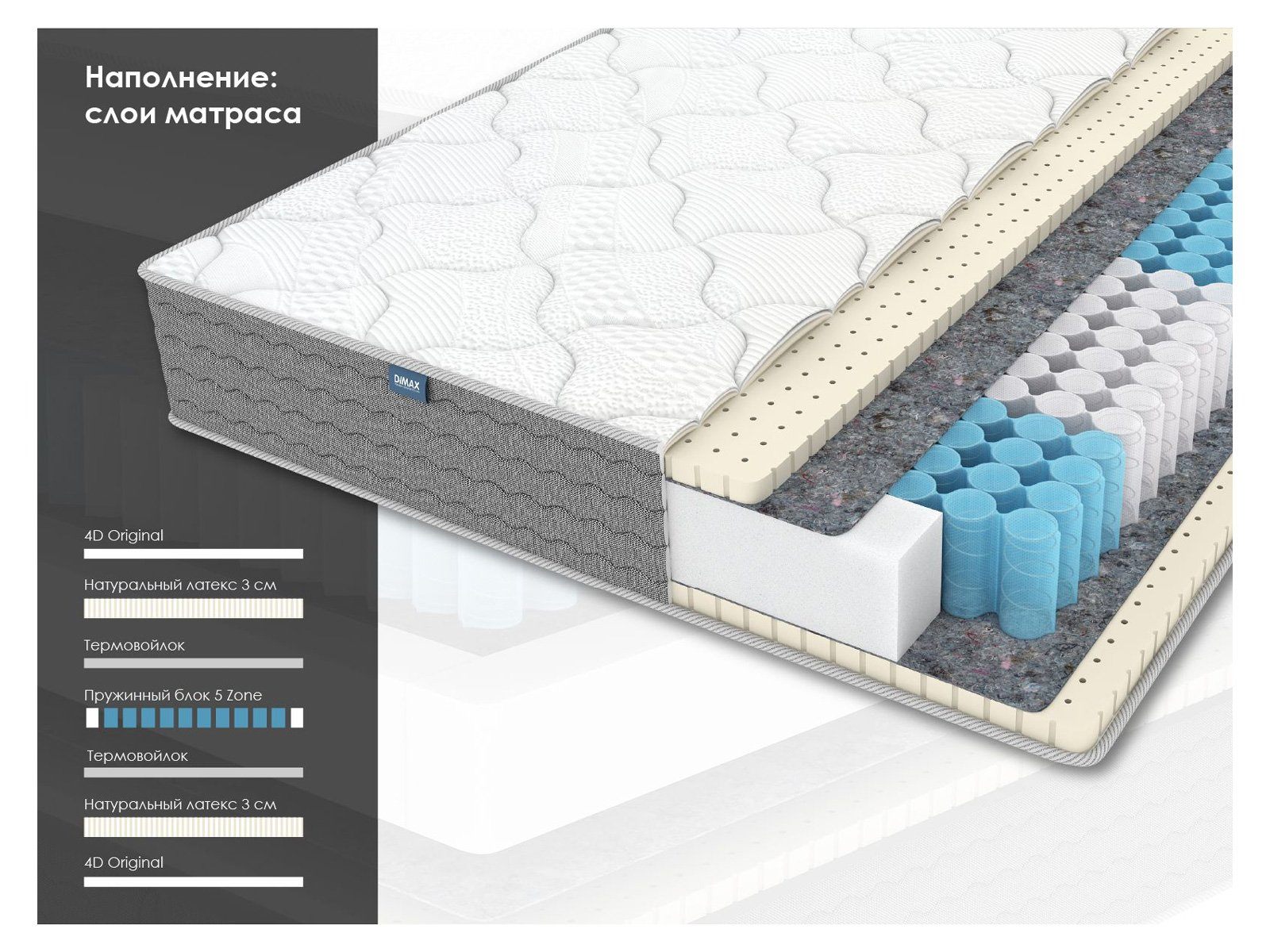 Это оптимальное решение для тех, кто любит спать на нежной, обволакивающей поверхности без потери ортопедических свойств. Матрас удачно сочетает эластичность натурального латекса и продвинутый ортопедический блок 5 Zone.