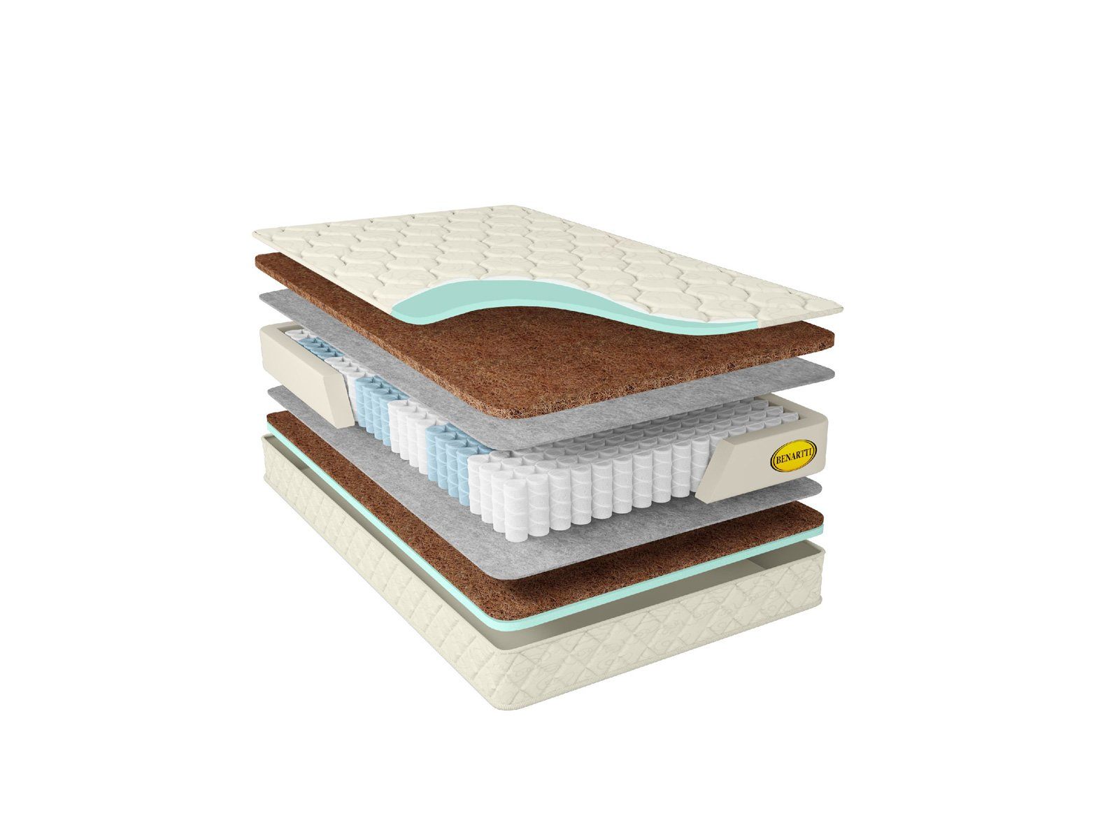 Несмотря на жёсткость, стороны отличаются в своей плотности. Это стало возможно благодаря разной толщине основного наполнителя – кокосовой койры. У верхней поверхности она установлена в объёме 2 см, а в нижней – 1 см. Естественно, что вариант с более высокой плитой будет жёстче.