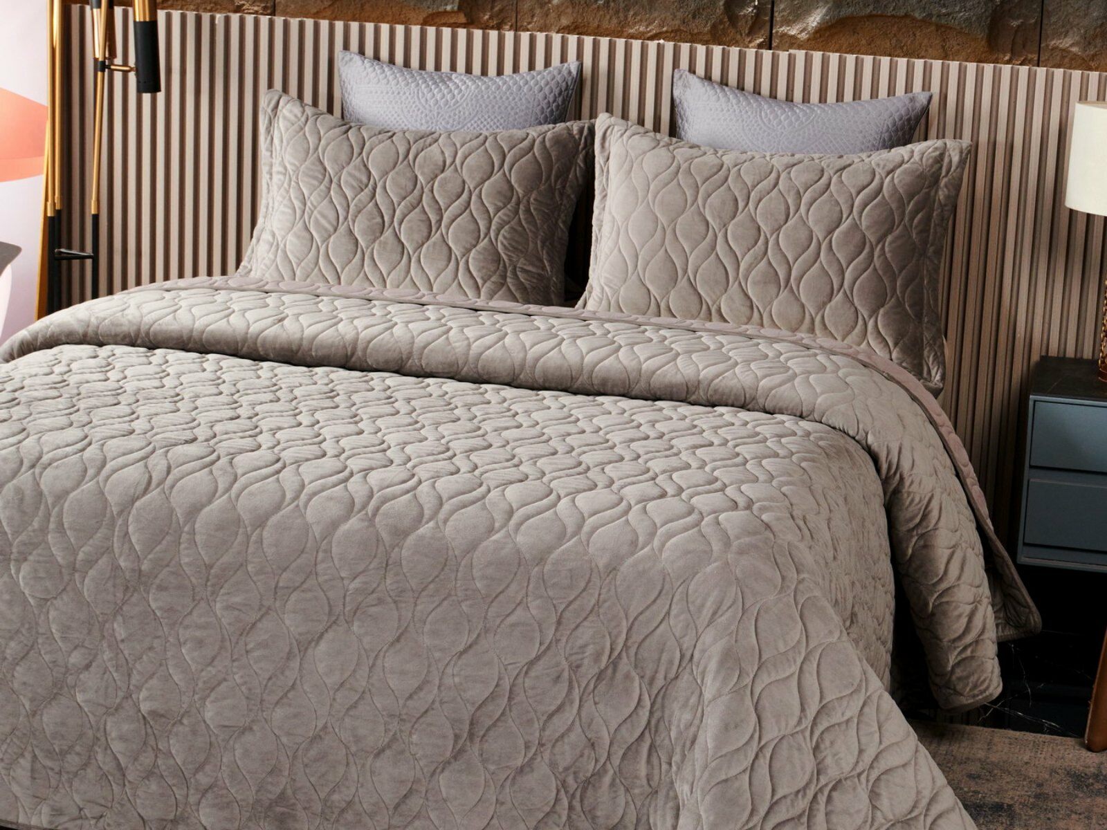 Покрывала представлены в 8 оттенках: пепельная роза, серый, крем, светлый беж, малахит, шоколадный, медный, антрацит