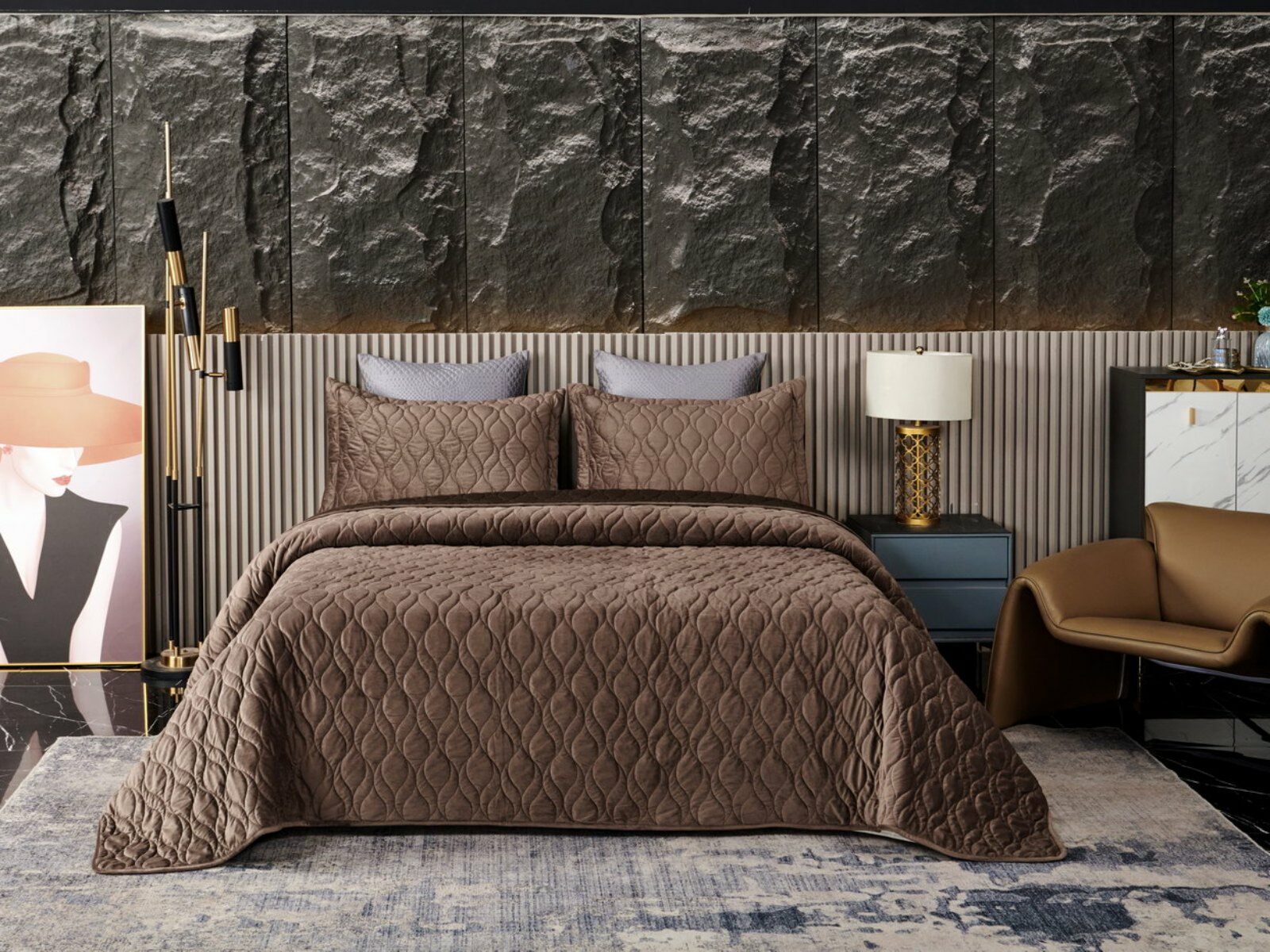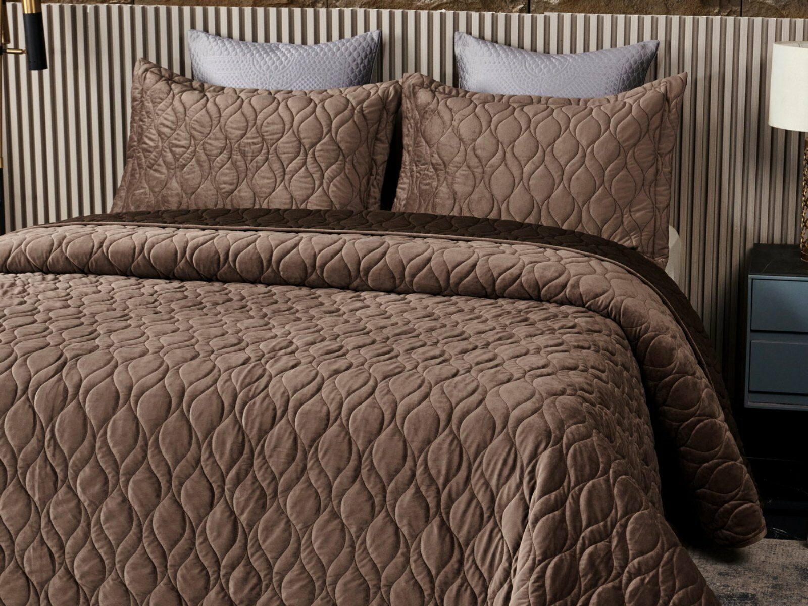 Покрывала представлены в 8 оттенках: пепельная роза, серый, крем, светлый беж, малахит, шоколадный, медный, антрацит