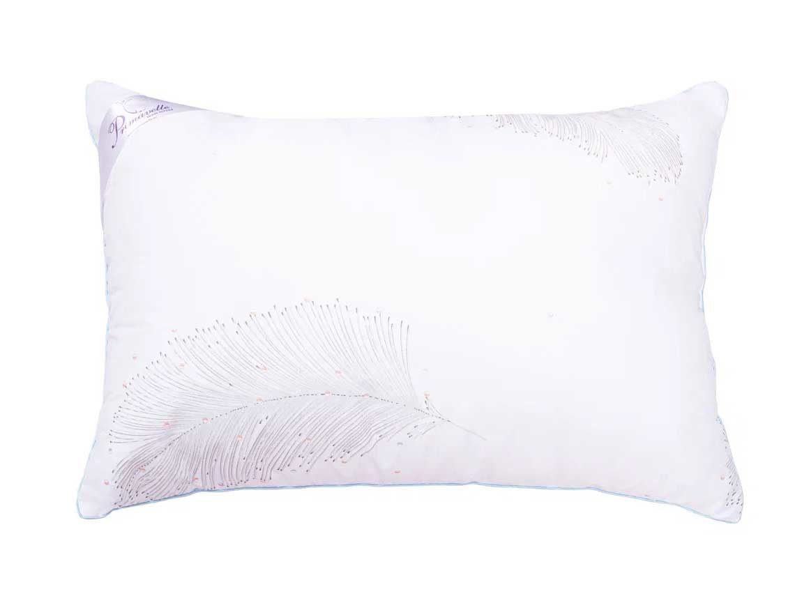 Чехол подушки выполнен из ткани Brushed-твилл. Ткань разработана специально для стран северной Европы и Канады. Она мягкая и бархатистая, обладает повышенной плотностью, хорошо пропускает воздух, не деформируется и быстро сохнет. Благодаря биоцидной обработке против грибков и клещей изделие является безопасным и подарит Вам незабываемый комфорт во время сна. Украшает подушку эксклюзивный принт "перышко" и отделка голубым кантом по периметру. Рисунок имеет отделку мерцающим пигментом, за счет чего изделие выглядит оригинально и красиво и может послужить прекрасным подарком.