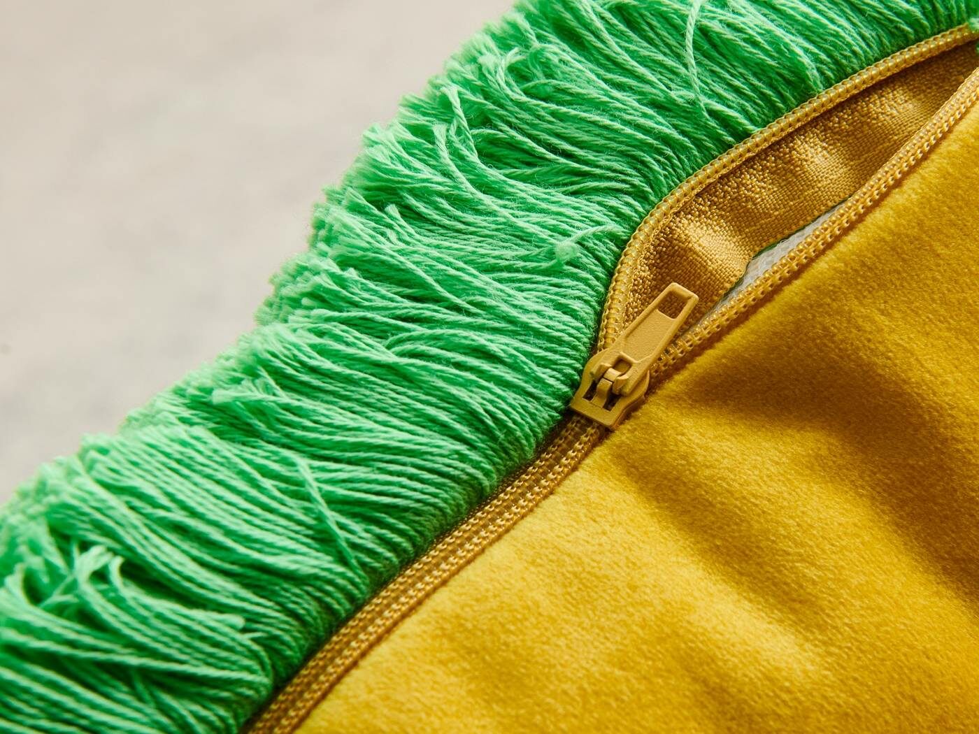 Особенность : с бахромой, потайная молния под цвет вшита в край наволочки.