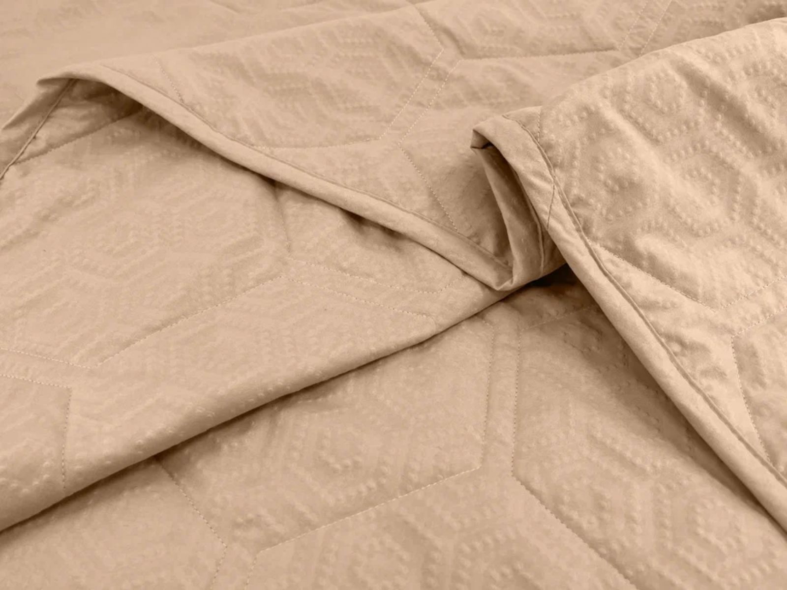 Двустороннее покрывало Relax - комфортное, практичное и стильное решение для вашей спальни. Изюминкой покрывала является оригинальная ткань с объемным фактурным дизайном, который создает оригинальный внешний вид и дарит приятные тактильные ощущения. В составе ткани органично сочетаются вискозные и полиэфирные нити, благодаря чему изделие имеет лучшие потребительские свойства, такие как легкость, мягкость, антистатичность, гипоаллергенность и износостойкость. Покрывало украшено модной ниточной стежкой "Соты", которая повторяет геометрию фактурного дизайна. Изделие прекрасно переносит регулярные стирки и быстро сохнет. Современная технология производства ткани гарантирует сохранение рельефа рисунка и стойкость цвета. Отсутствие пиллинга и устойчивость к образованию зацепок позволяют использовать покрывало и в качестве накидки на диван.