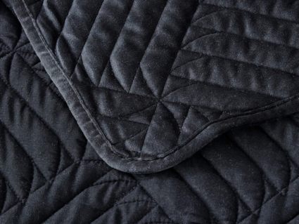 Покрывала выполнены в 10 оттенках: крем, мокко, пепельный, песочный, светло-бежевый, светло-серый, серый, темно-серый, чайная роза и черный. Стежка в виде геометрического орнамента подойдет к любому современному интерьеру. Из-за особого плетения, велюровая ткань покрывала отражает свет и красиво переливается при различном освещении.