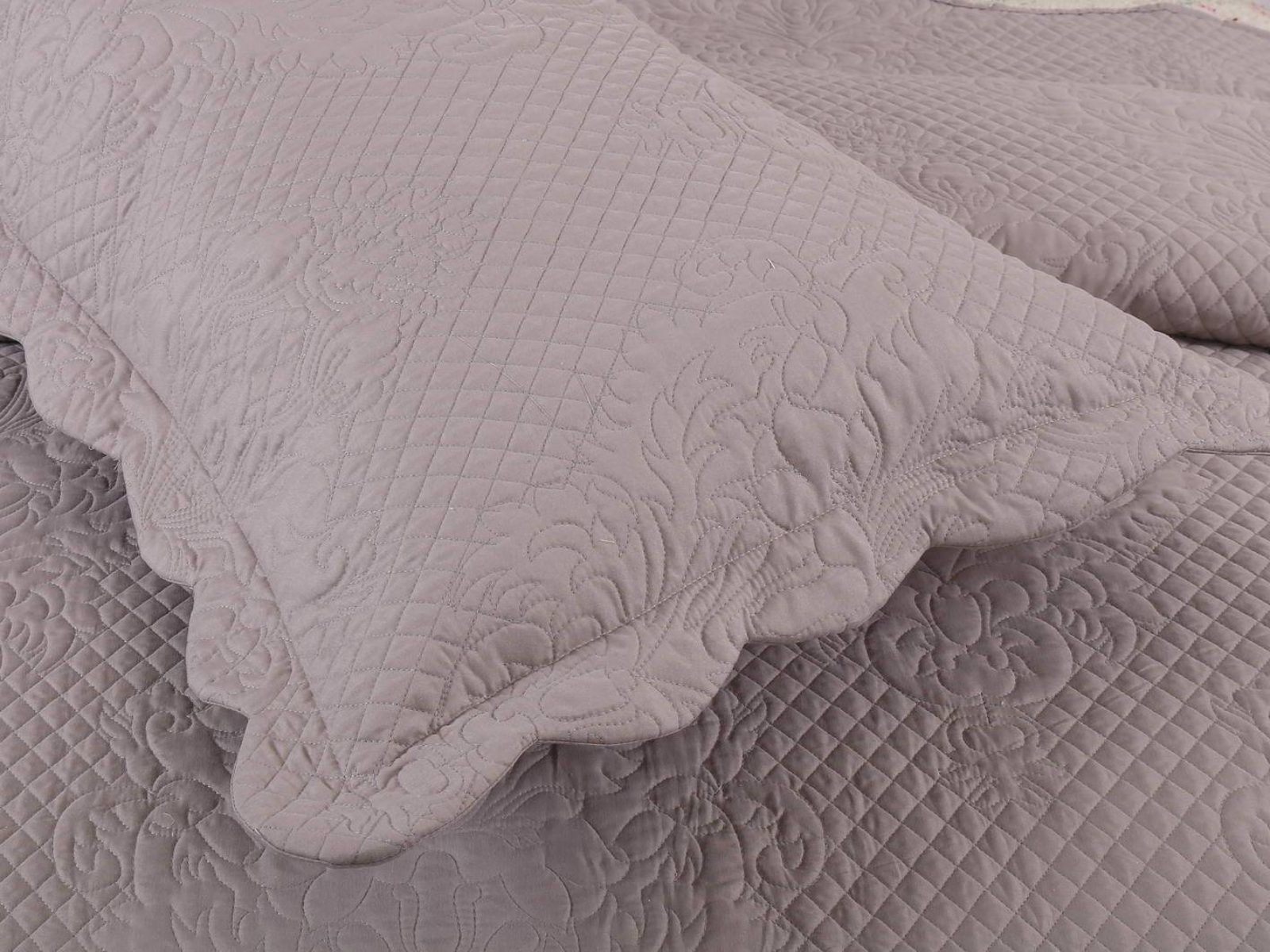 В комплект входят покрывало и одна либо две наволочки (50х70 см) из аналогичного материала в зависимости от размера. Каждый набор заботливо упакован в фирменную подарочную сумку.Покрывало с рельефной стежкой.