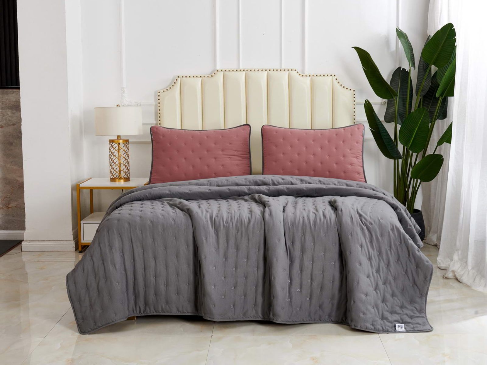Двусторонние стеганные покрывала Броуди легкие и прочные. В комплект входят покрывало и одна либо две наволочки (50х70 см) из аналогичного материала в зависимости от размера. При желании покрывало можно использовать как легкое одеяло.