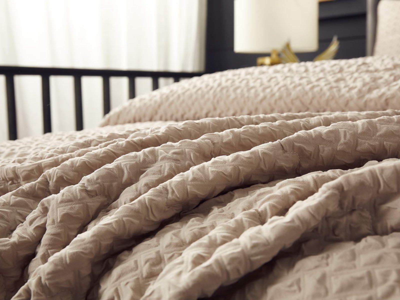 Если вы хотите придать уют вашей спальне, обратите внимание на покрывала коллекции Ирма. Выполненные в стиле модерн, в спокойных тонах, таких как бежевый, серый, молоко, пепел роза, пудра или мокко, они легко впишутся в ваше помещение.