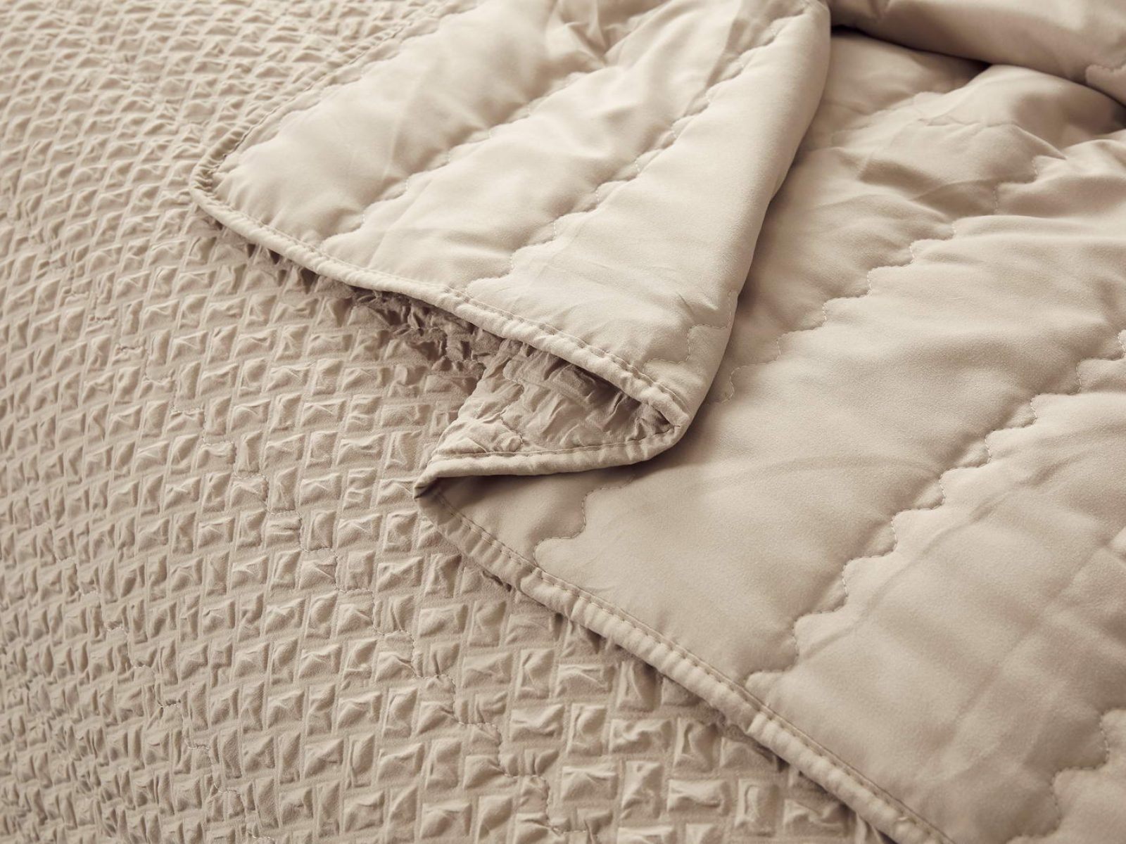 Покрывала Ирма и подушки в тон добавят изысканности в любой интерьер. Сделанные из хлопка и вискозы, эти стеганые покрывала прослужат очень долго, они не полиняют и не вытянутся, хлопок хорошо греет, а вискоза держит форму изделия. Стежка придает покрывалам не только прочность, но изысканность и изящество.