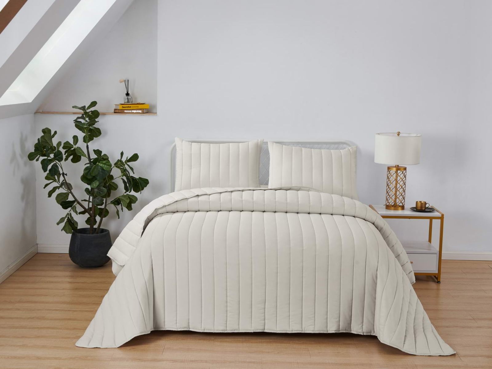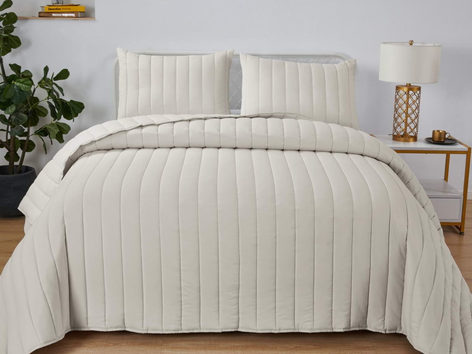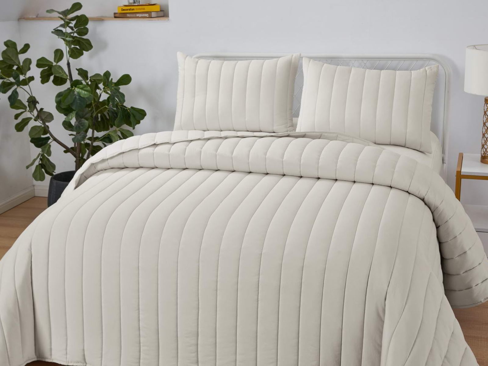 Это не просто практичное и долговечное покрывало. Это универсальное покрывало, которое подойдет к любому интерьеру и разнообразит его. Покрывало можно использовать как легкое одеяло. Оно выполнено в восьми спокойных оттенках: мокко, крем, лиловый, изумруд, розовый, бежевый, серый и пудра. Стеганое покрывало Микаэль прослужит очень долго, оно не полиняет и не вытянется. Стежка придает покрывалам не только прочность, но изысканность и изящество.
