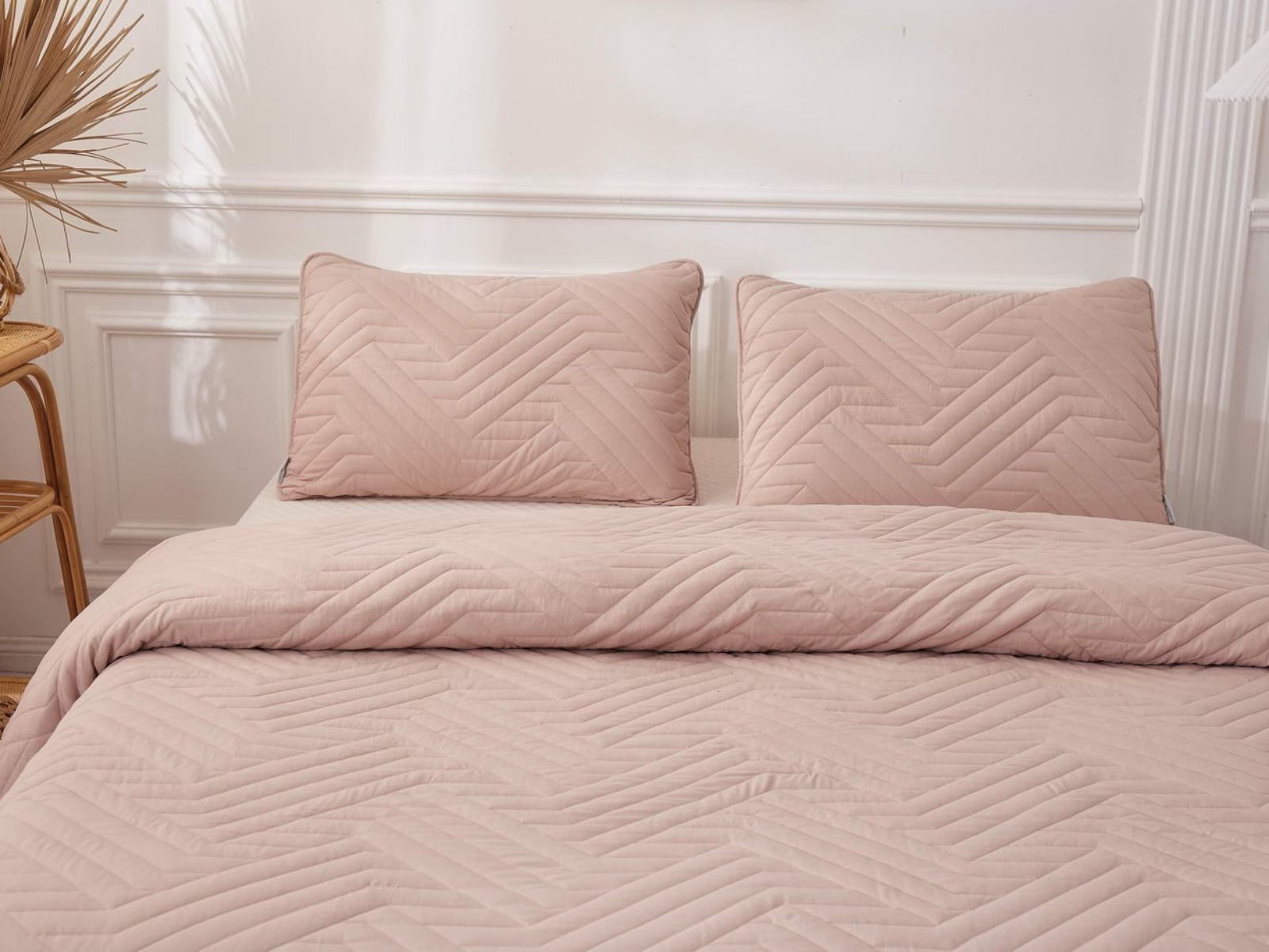 В комплект входят покрывало и одна либо две наволочки (50х70 см) из аналогичного материала в зависимости от размера. Изделия гипоаллергенны, они подходят детям и людям с чувствительной кожей. Покрывала и наволочки не линяют, сохраняют форму и цвет при многочисленных стирках и не выгорают на солнце. Изделия можно стирать в щадящем режиме при температуре не выше 30 градусов.