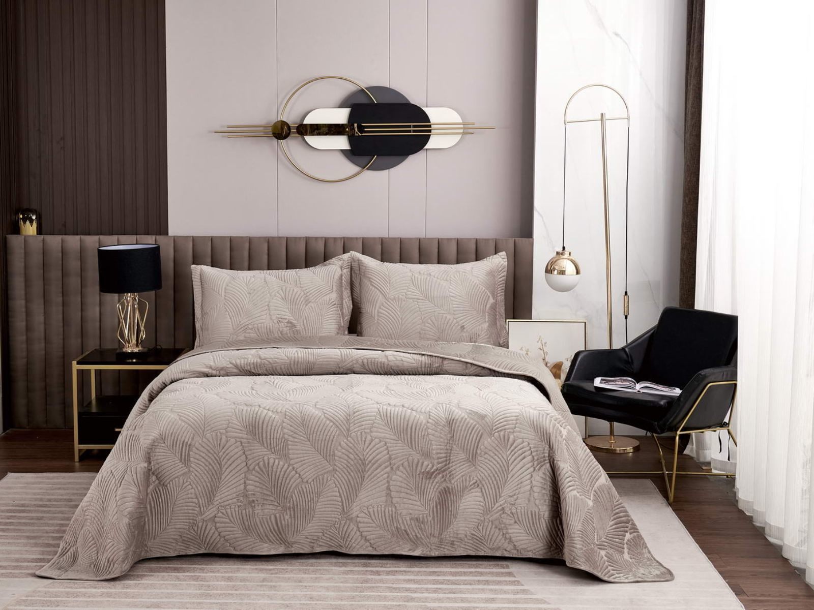 На создание велюрового покрывала Ноэль наших дизайнеров вдохновила ночь в середине лета, когда на раскаленную от жары землю спускается долгожданная прохлада. Роскошная вышивка в виде пальмовых листьев будет напоминать о тени, которую отбрасывают деревья.