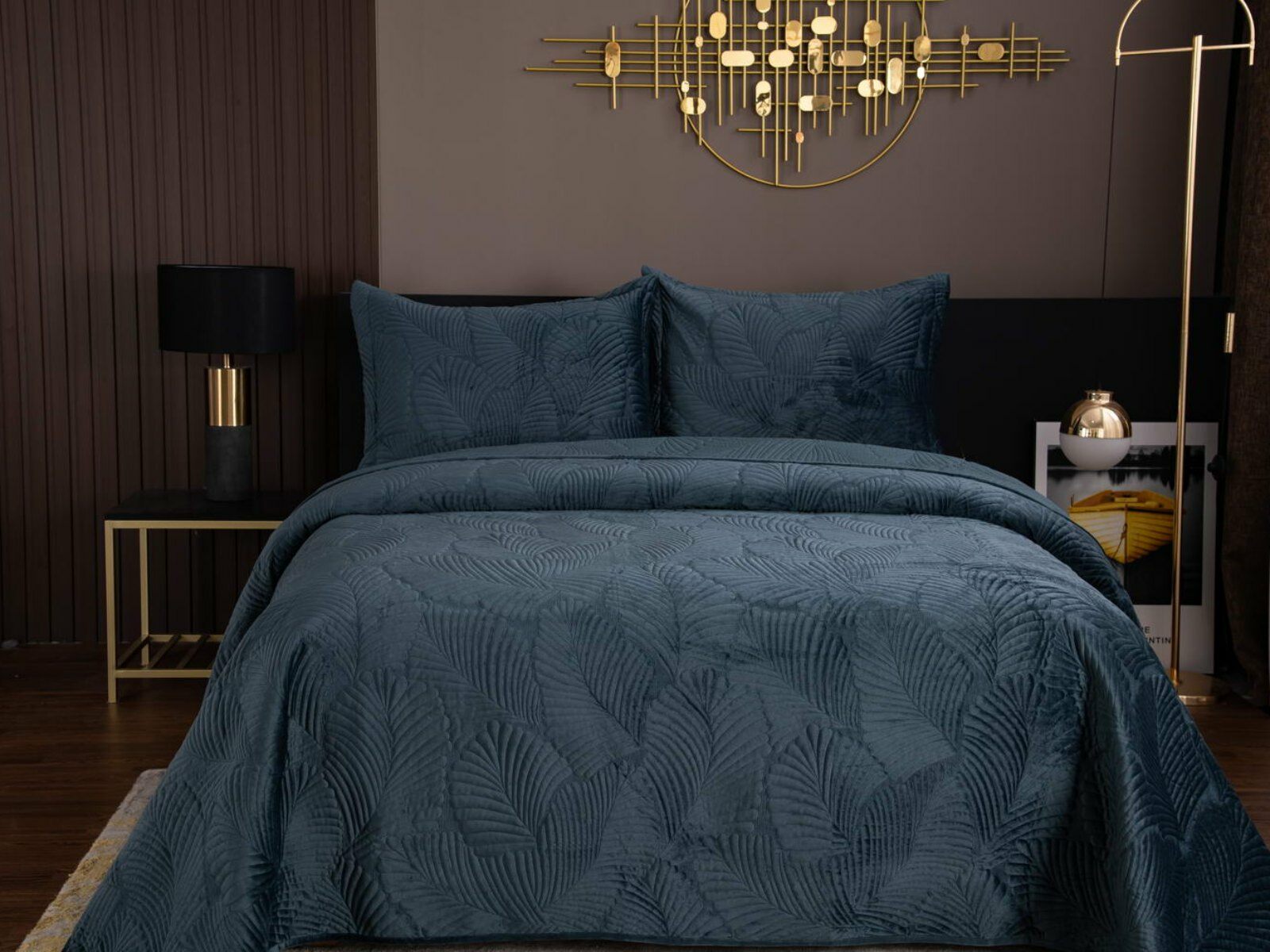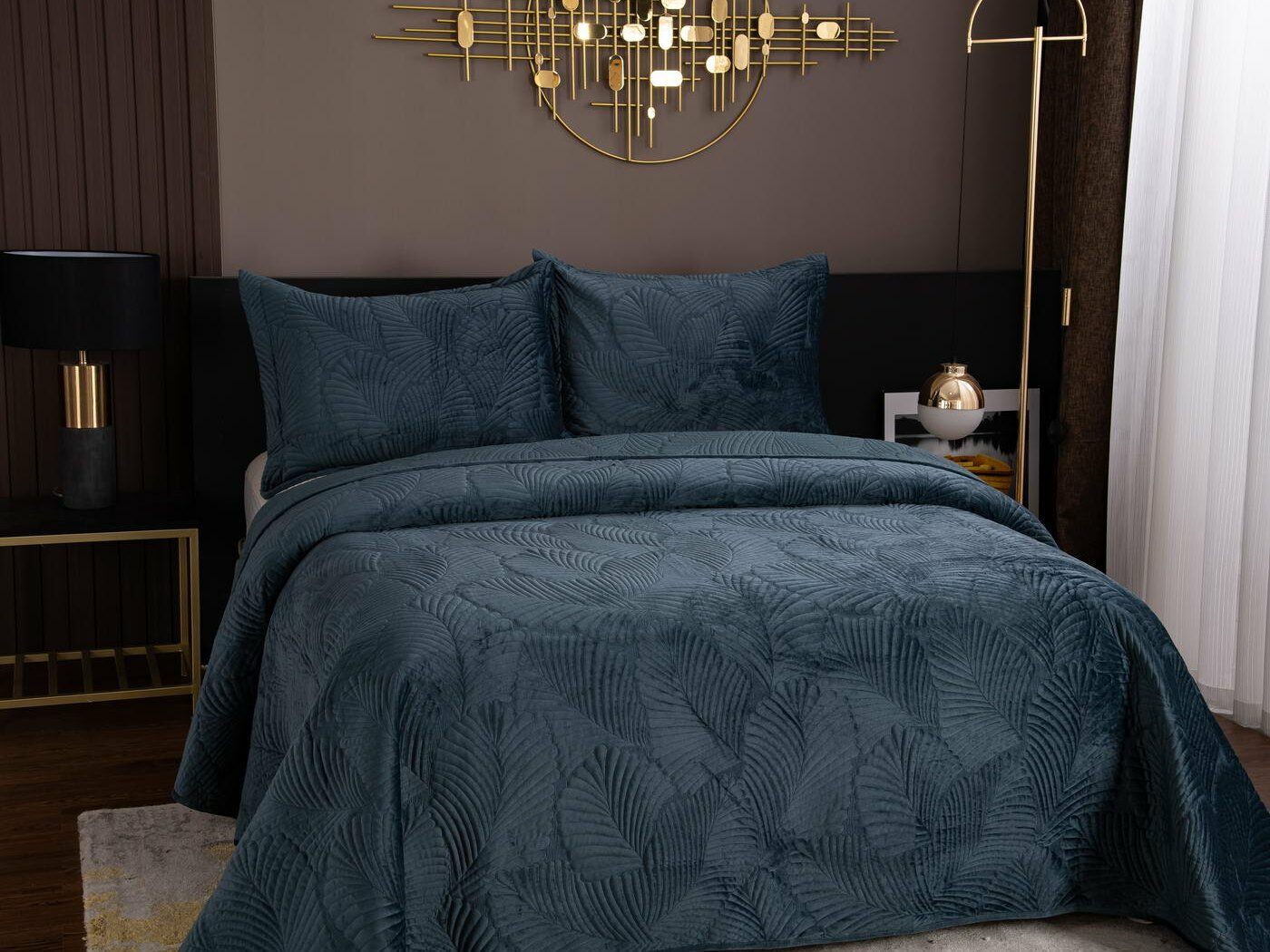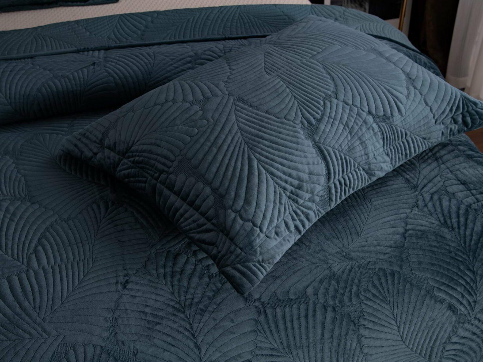 На создание велюрового покрывала Ноэль наших дизайнеров вдохновила ночь в середине лета, когда на раскаленную от жары землю спускается долгожданная прохлада. Роскошная вышивка в виде пальмовых листьев будет напоминать о тени, которую отбрасывают деревья.