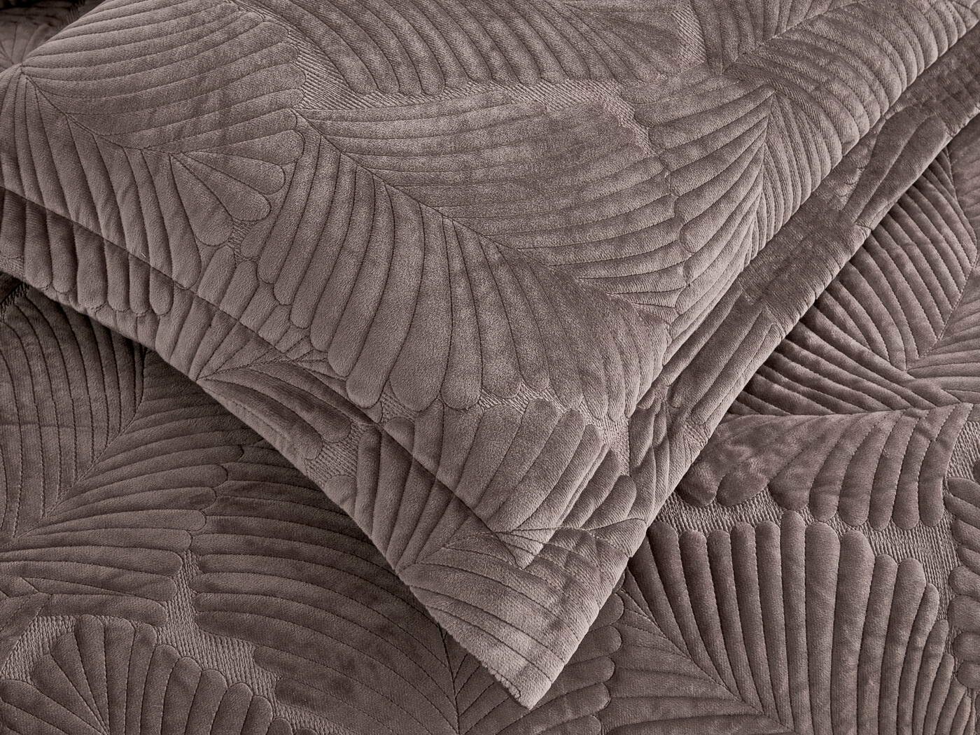 На создание велюрового покрывала Ноэль наших дизайнеров вдохновила ночь в середине лета, когда на раскаленную от жары землю спускается долгожданная прохлада. Роскошная вышивка в виде пальмовых листьев будет напоминать о тени, которую отбрасывают деревья.